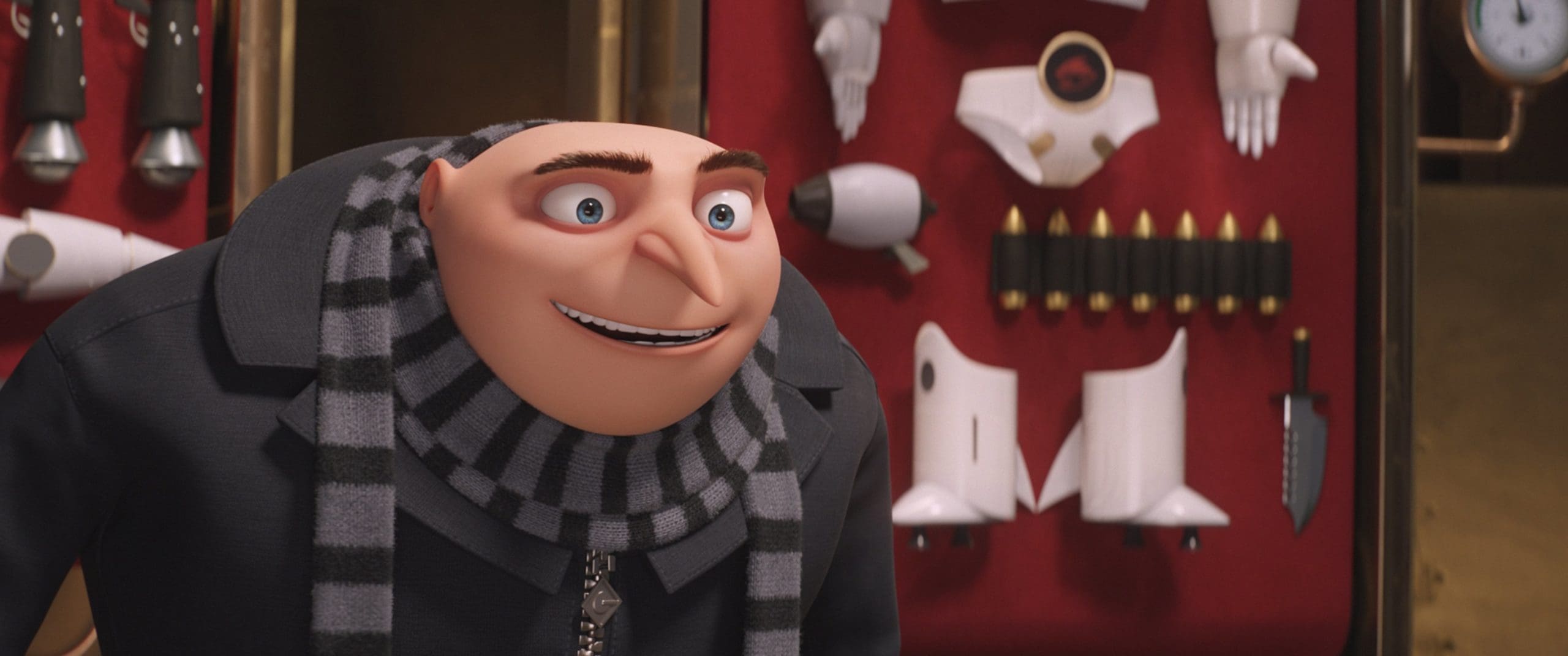Überhaupt bewegt sich der Humor hier überraschend oft außerhalb der Reichweite seines Kernpublikums, den Kindern. So ist der Bösewicht allein schon vom Konzept her ausschließlich für die Eltern gemacht. So liebevoll er auch gestaltet ist, all die 80er Referenzen und Seitenhiebe bleiben den Kindern natürlich völlig verborgen. Oder wenn beispielsweise die Minions am Strand mit vollbusigen Strandschönheiten ihren Spaß haben, weiß man nicht so genau für wen das jetzt eigentlich gedacht ist… und Grus zuckersüße Töchter sind, wie schon in den Vorgängern, ein absolutes Highlight und an Liebenswürdigkeit kaum zu überbieten. Doch hier erfüllen auch sie keinen wirklichen dramaturgischen Zweck und scheinen nur vorhanden zu sein, um den Zuckergehalt des Films zu erhöhen.