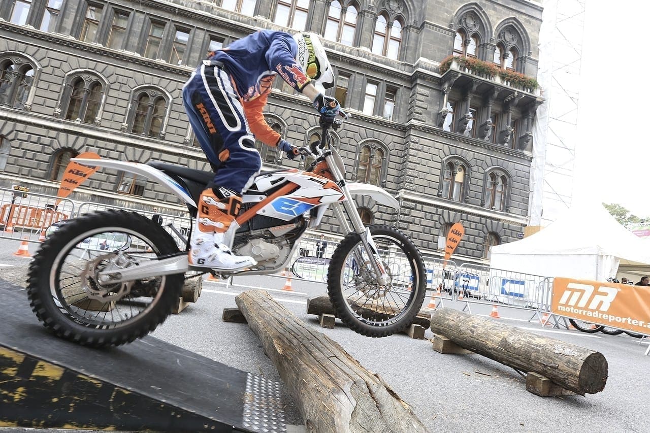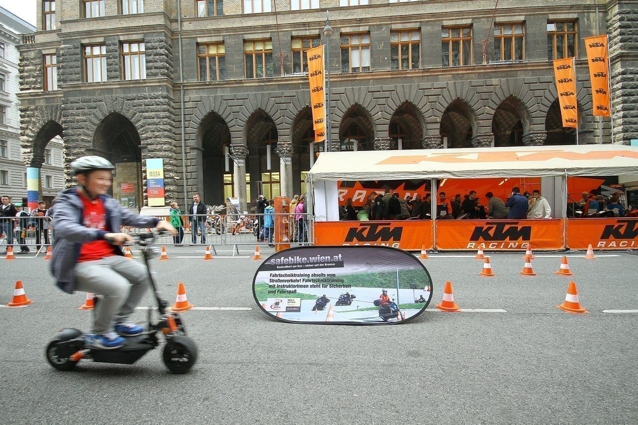 Dank sommerlichen Temperaturen wurde auch das Außengelände am Friedrich-Schmidt-Platz stark genutzt, wo man spektakuläre Shows von Österreichs KTM Werksfahrer und Erzbergfinisher Dieter Rudolf und Red Bull MTB Trial Fahrer Tom Öhler bestaunen konnte. Einen starken Auftritt legte auch Safebike Wien, die Verkehrssicherheitsaktion der MA46, hin. Hier wurden insgesamt 1.250 Probefahrten auf den modernsten eRollern und eMotorrädern absolviert. Auch Sportlergrößen wie Thomas Morgenstern, Senad Grosic oder Fussball-Pro’s der Vereine Wiener Sportklub, First Vienna, SC / ESV Parndorf und SC Wiener Neustadt ließen sich zum FIFA 15 Promi-Kickerl auf Xbox One herausfordern.
