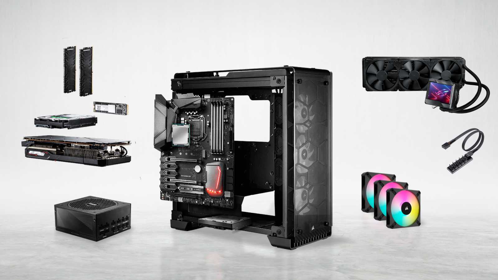 - Weitere Komponenten: Monitore, RGB-Beleuchtung, Maus etc.