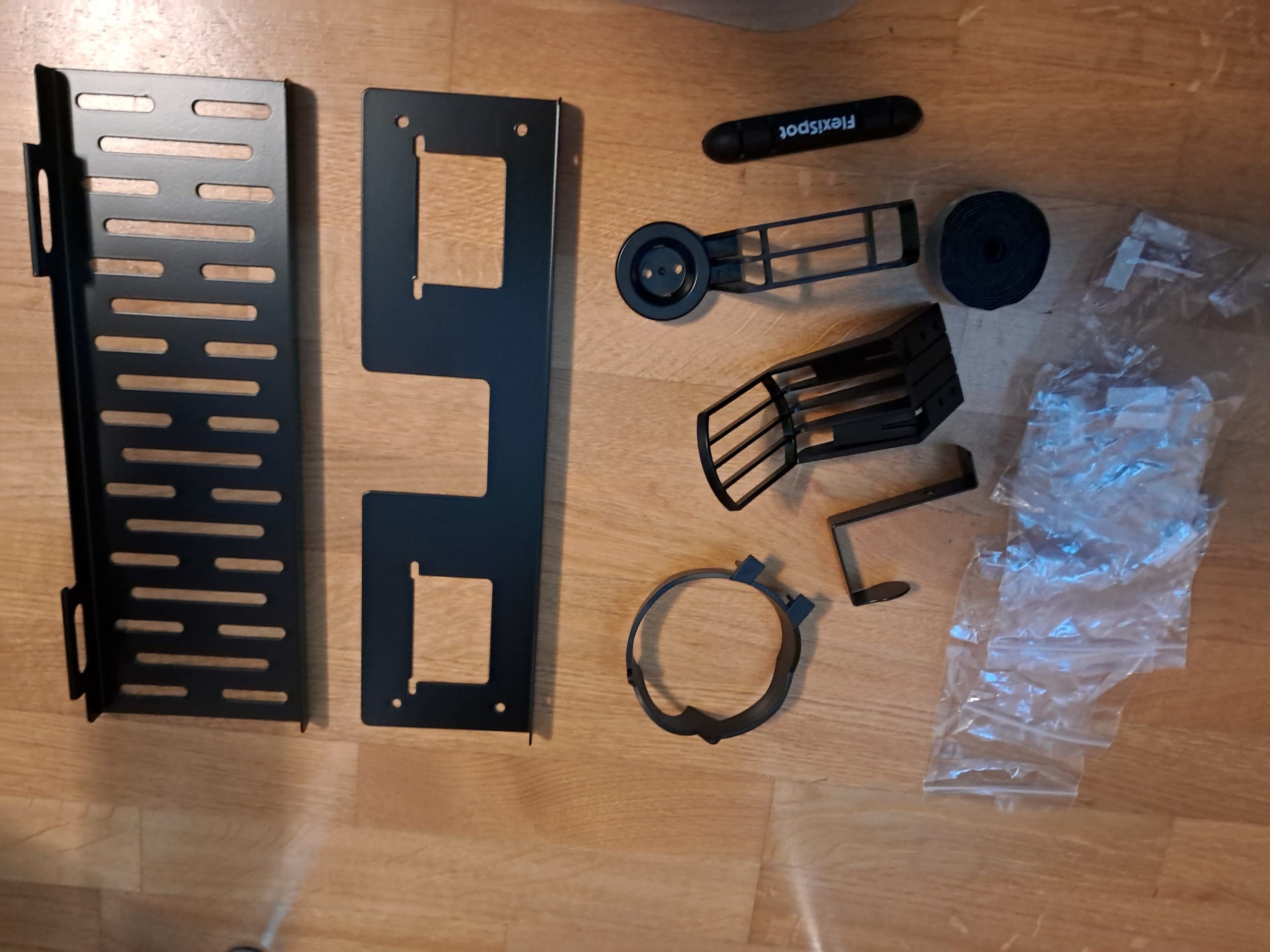 Zubehör kostet im Regelfall ein Vermögen, wenn man es extra dazu kaufen muss. Es ist daher immer toll, wenn man einige wesentlichen Dinge gleich mit dem Hauptprodukt zusammen erhält. Und hier enttäuscht der GT5 in keinster Weise. Zum Tisch gehört noch ein extra Paket vollgepackt mit einer ordentlichen Menge an Gamer-Zubehör, mit dem ihr den Tisch an euren Bedarf anpassen könnt. In dem Paket befindet sich sieben Accessoires. Einerseits ist ein hochwertiger Kabelkanal aus Metall enthalten. Der kann an der Unterseite des Tisches angeschraubt werden, um darin unzählige Kabel unterzubringen. Zusätzlich befinden sich 20 kleine Kabelclips in der Packung, die mit einer selbstklebenden Oberfläche versehen sind und sowohl am Holz als auch auf den Metallteilen befestigt werden können, um darin ein Kabel zu fixieren. Ein selbstklebender Kabelorganisierer mit vier Öffnungen dient dazu, das Kabelchaos am Tisch zu verringern. Sehr praktisch ist eine 2m lange Rolle mit Klettverschluss, die als Kabelbinder gedacht ist. Ihr könnt sie auf die benötigte Länge abschneiden und im Gegensatz zu richtigen Kabelbindern jederzeit wiederverwenden. Ein Getränkehalter kann auf der Unterseite des Tisches angeschraubt werden, ebenso eine spezielle Kopfhöreraufhängung. Schlussendlich ist noch ein schwerer Metallhaken dabei, der mit bis zu 4 kg belastet werden kann.