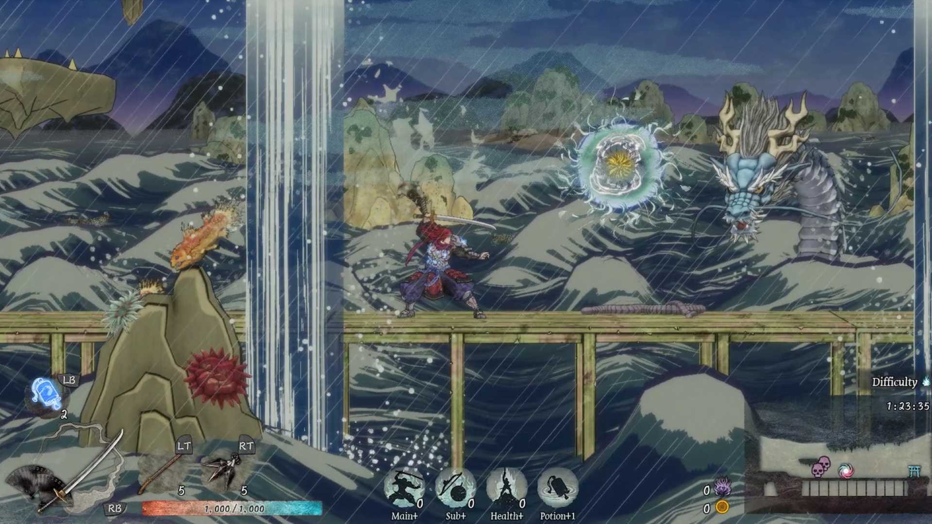 GetsuFumaDen: Undying Moon liefert höchststrategischen Kampf, der auf den entscheidenden Merkmalen der japanischen Kampfkünste basiert. Angsteinflößende Bossgegner und stetig im Wandel befindliche Umgebungen fordern den Spieler zu jeder Zeit heraus und lassen ihn mit jedem Versuch stärker werden.