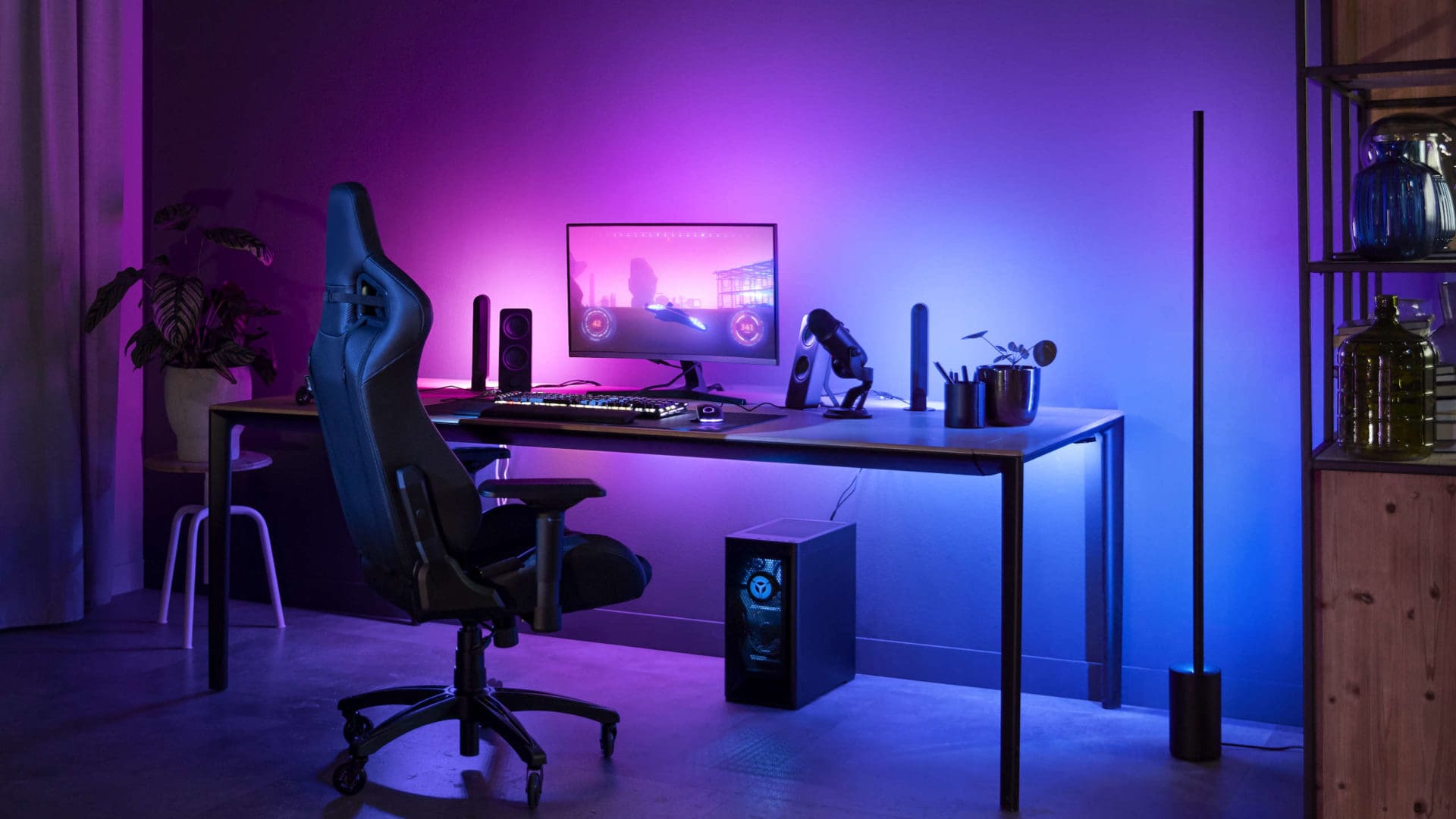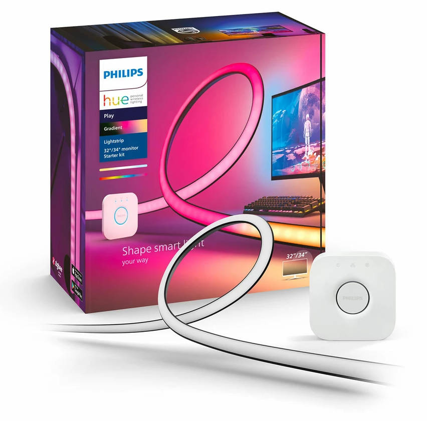 Bereichert eure Gaming-Erfahrung durch einen coolen Farbverlauf aus reaktivem, farbigem Licht! Der Hue Play Gradient PC Lightstrip lässt sich mit den mitgelieferten Halterungen hinten an eurem 32- bis 34-Zoll-Monitor ganz einfach befestigen. Synchronisiert ihn mit der Hue Sync Desktop App und erlebt, wie sich das Geschehen auf eurem Bildschirm im Licht widerspiegelt. Die dafür notwendige Philips Hue Bridge ist in diesem Paket, welches ihr bei uns gewinnen könnt, übrigens mit enthalten.