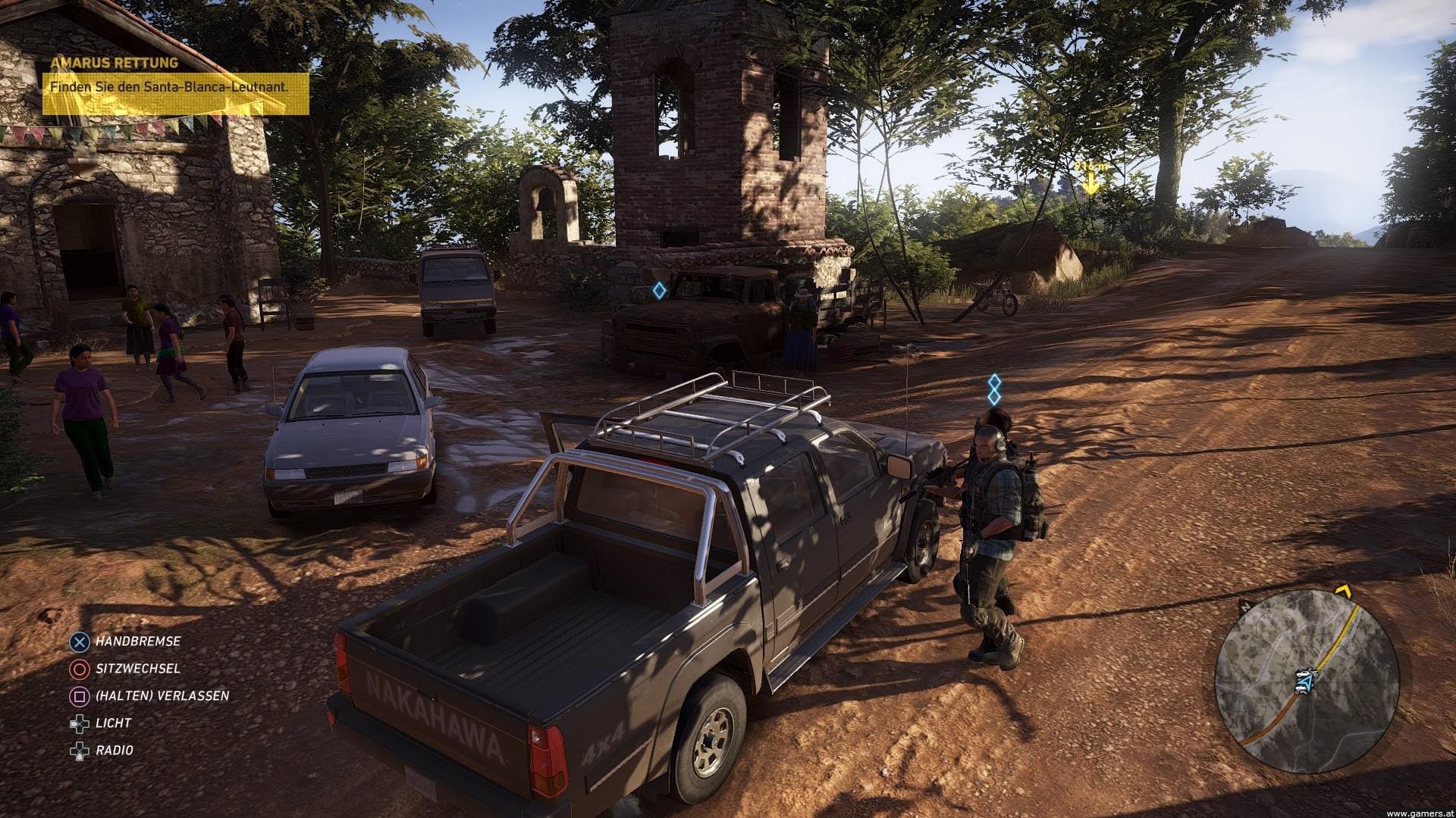 Die Entwickler setzten für Wildlands auf die hauseigene Anvil-Engine, die bereits für die Assassin’s Creed-Teile oder zuletzt auch Steep herhalten musste. Diese macht ihre Sache auch über weite Strecken ganz gut, auch wenn der Titel optisch nun nicht unbedingt Bäume ausreißt. Dennoch: Wie für die Engine typisch kann vor allem die Weitsicht überzeugen. Selbst auf der am PC niedrigsten Qualitäts-Stufe sieht man noch eine gefühlte Ewigkeit über die sanften Hügel und schroffen Berge Boliviens. Apropos Qualitäts-Stufen: Greift man zur PC-Version des Spiels (wobei als Kopierschutz übrigens immer Uplay zum Einsatz kommt – auch wenn man eine Steam- oder Boxed-Version kauft), warten zahlreiche Settings darauf von euch feinjustiert zu werden, um so aus eurer Hardware das Maximum herauszuholen. Angenehme Randnotiz: Gar SO viel Leistung braucht ihr gar nicht. In Full HD sollte schon ein Modell der oberen Mittelklasse reichen, um in den Genuss so ziemlich aller Features zu kommen. Steckt dennoch zu wenig Power im Rechner, ist das aber auch kein Beinbruch. Bei minimalen Settings sieht das Spiel zwar deutlich schlechter, aber immer noch nicht zum Davonlaufen aus. Wir haben in zwei Szenen Vergleichs-Screenshots für euch gemacht. Ihr seht hier immer abwechselnd die maximalen und minimalen Details. Welches Bild was darstellt, dürfte selbsterklärend sein …