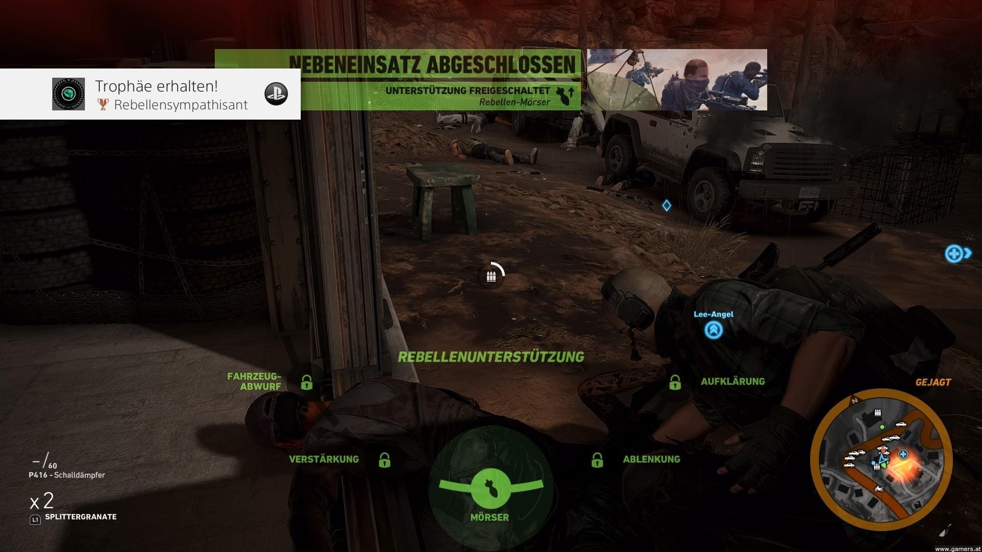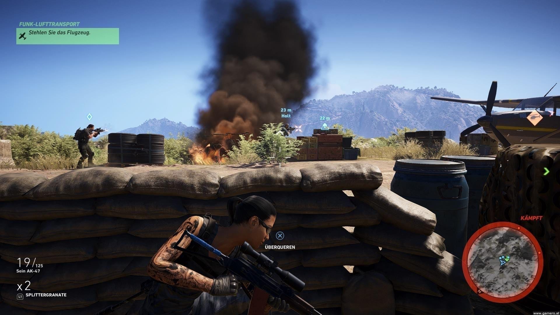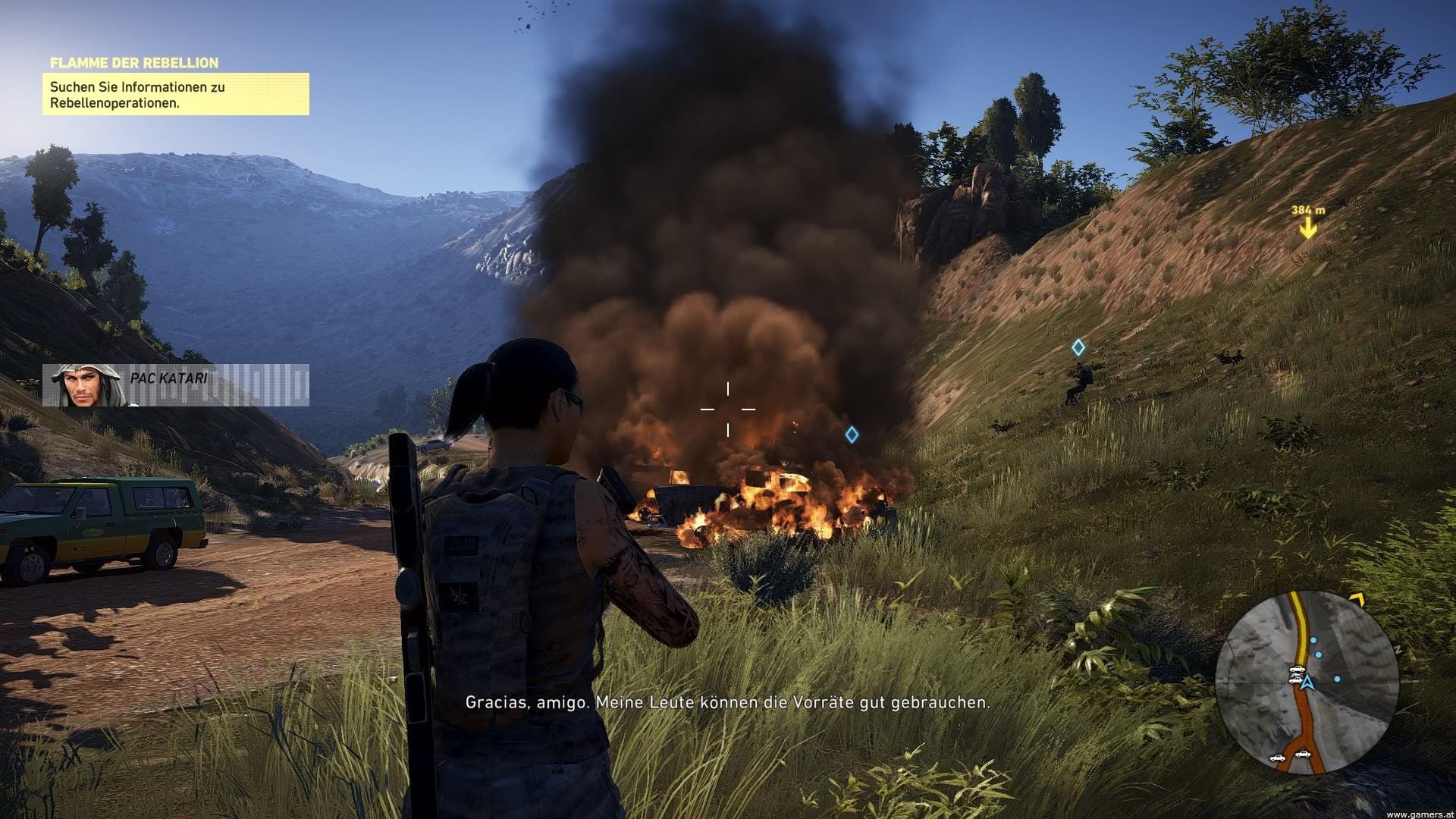 Neben den zahlreichen Hauptmissionen können wir auch noch etliche Nebenaufgaben erledigen um die Rebellen zu unterstützen, die uns dann freundlicherweise wiederum im Kampf unter die Arme greifen. Primär gilt es hier Nachschub zu beschaffen indem wir entsprechende Objekt markieren, Flugzeuge stehlen oder feindliche Konvois aufhalten. All das ermöglicht nach und nach die Unterstützung der Rebellen auf den Plan zu rufen, sei es in Form eines Ablenkungsmanövers, Mörserangriffe oder einer direkten Unterstützung beim Kampf. Wird man im Eifer des Gefechts dann doch vom Gegner überrannt und schwer getroffen heißt es auf die Hilfe der Kameraden zu warten, die unsere Wunden versorgen bzw. uns 1x pro Kampf wiederbeleben können. Dauert das zu lange ist der Kampf vorbei und wir müssen die Mission von vorne starten.