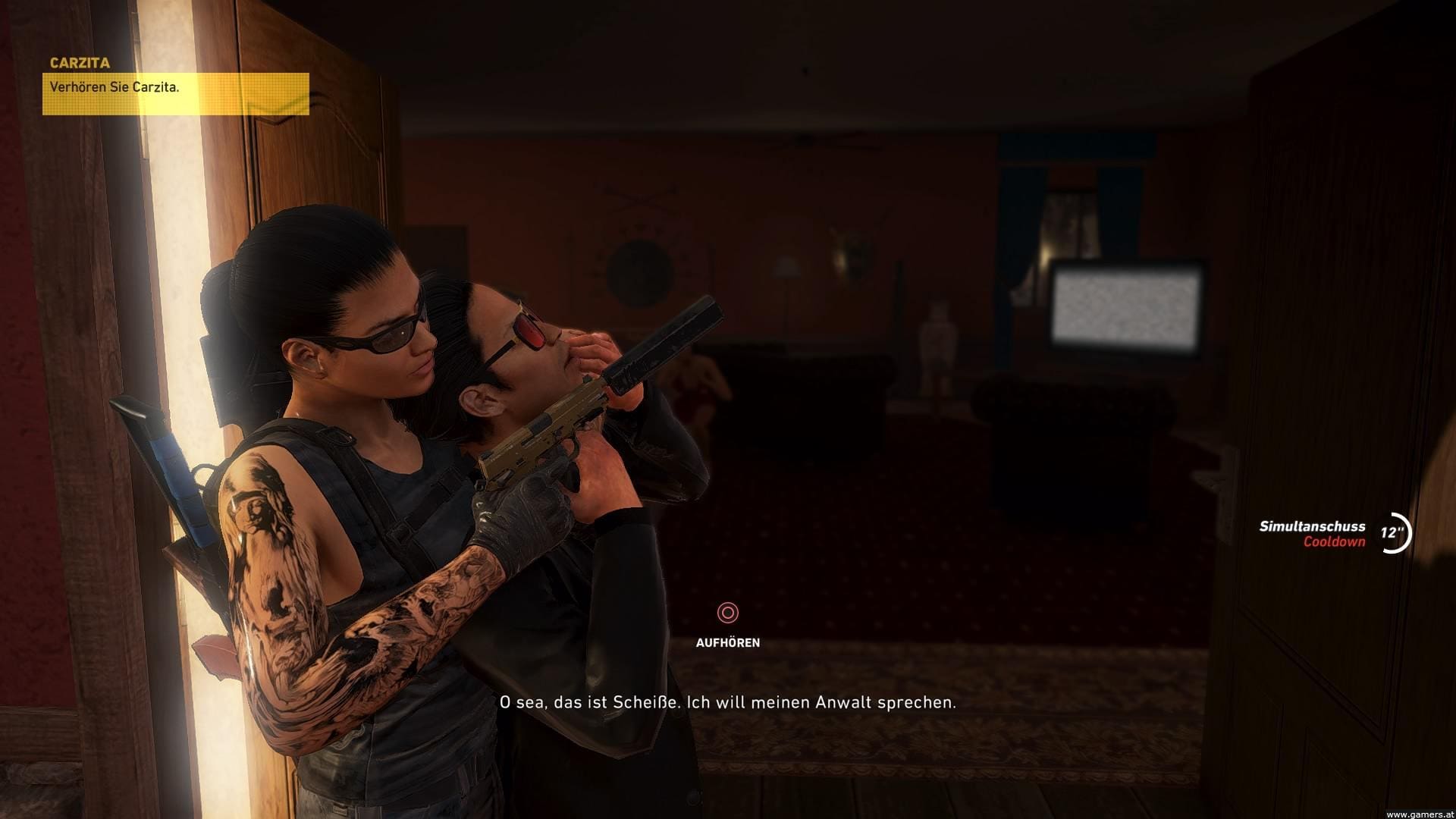 Jedenfalls verbirgt sich hinter dem Koop-Modus mit bis zu vier Spielern wohl die größte Stärke des Titels. Koordiniertes Vorgehen, gemeinsames Nutzen der diversen Mittel wie von Fahrzeugen und Co. und das so hoffentlich quasi unbesiegbare Auslöschen von gefühlten, ganzen Bataillonen von Sicarios und Soldaten ist gemeinsam mit anderen, echten Menschen noch ein ganzes Stück erquickender als solo. Vor allem, da das Ganze hier dann noch insofern ein gutes Stück realistischer wird, als dass eben tatsächlich jeder Ghost von den Gegnern gesehen werden kann und sich auch selbst darum kümmern muss, wie er in ein gemeinsames Vehikel kommt. Angenehm dabei: Man darf bei Bedarf in die Nähe eines Teamkollegen „schnellreisen“. Das ist vor allem wichtig, wenn man in ein laufendes Spiel anderer Zocker einsteigt, die vielleicht schon verstreut sind. Immerhin wird man nicht bei seinem Team, sondern am Startpunkt einer Mission ins Spiel geschickt.
