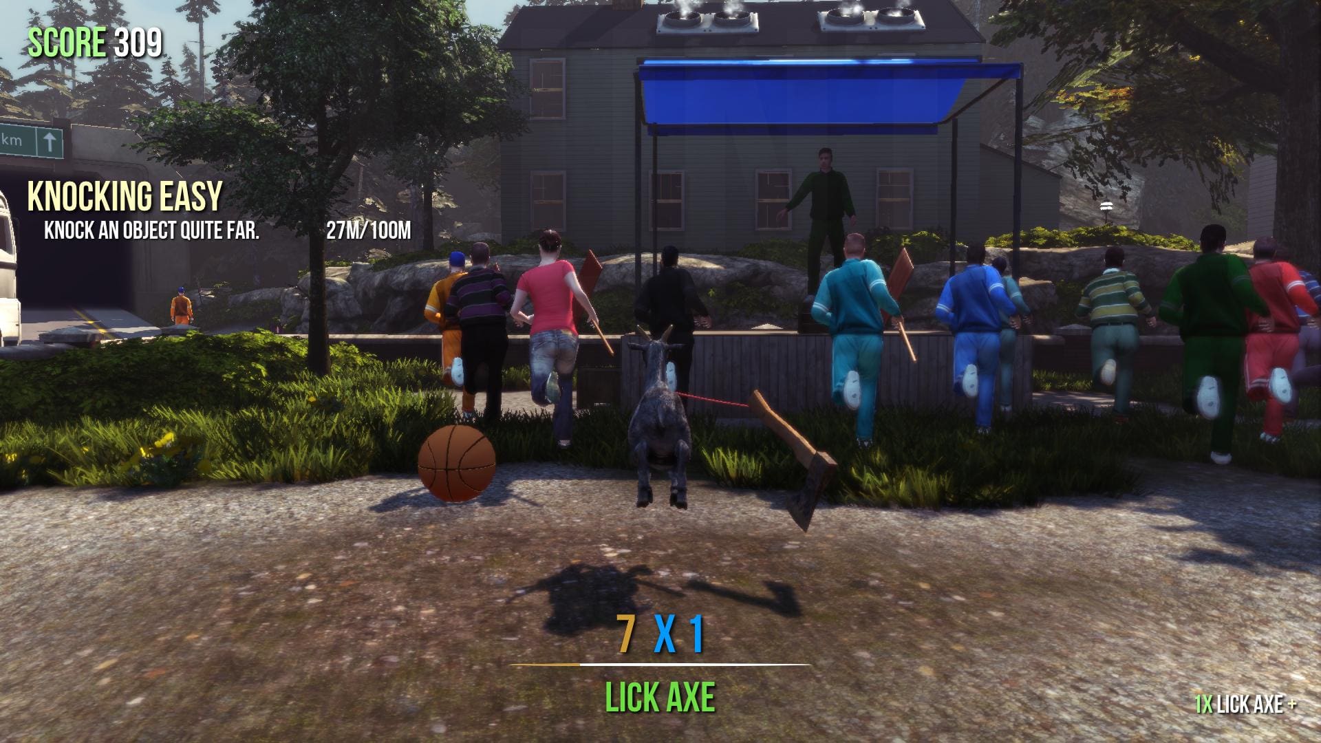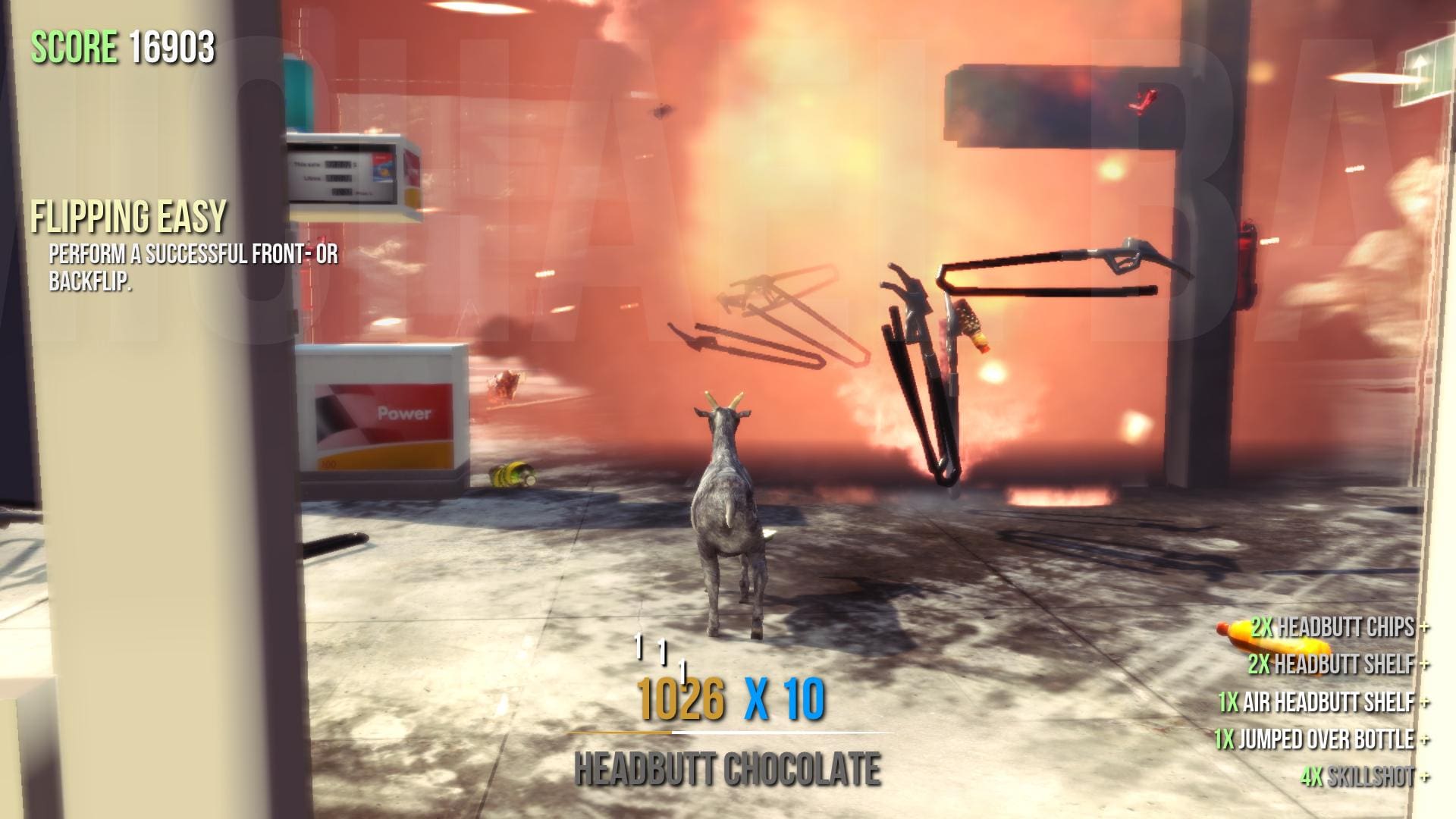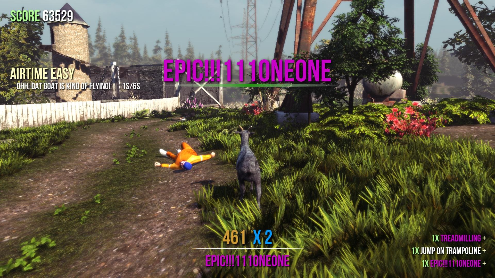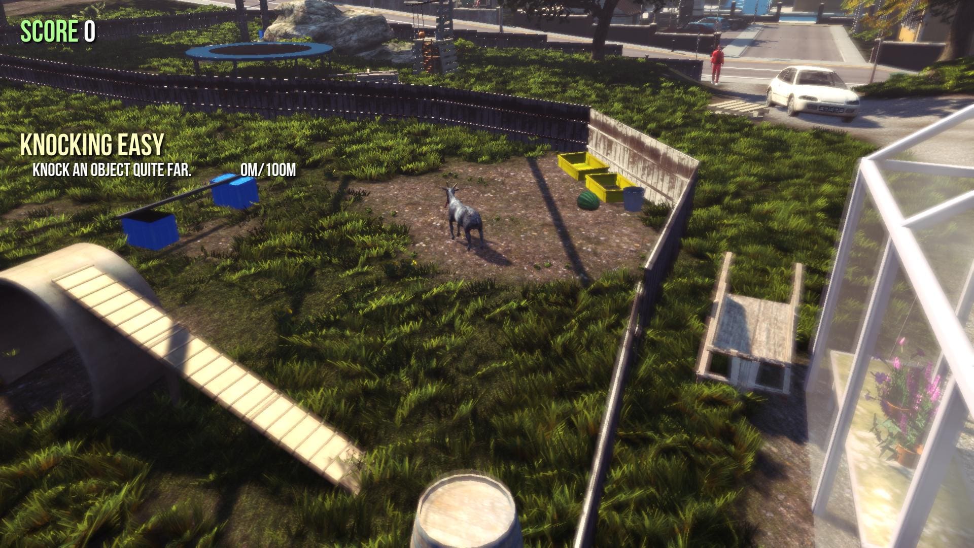 Falls es aber irgendjemandem zu diesem Zeitpunkt nicht klar sein sollte, hier noch eine wichtige „Info“: Goat Simulator nimmt sich zu KEINEM Zeitpunkt ernst und ebenso sollte man natürlich auch an das Spiel herangehen. Es gibt keine „Story“ oder ein „Charakterentwicklungsmodell“. Es gibt einfach nur eine Ziege und eine angenehm große Landschaft, in der man mit eben diesem Paarhufer eine Menge witziges anstellen kann.