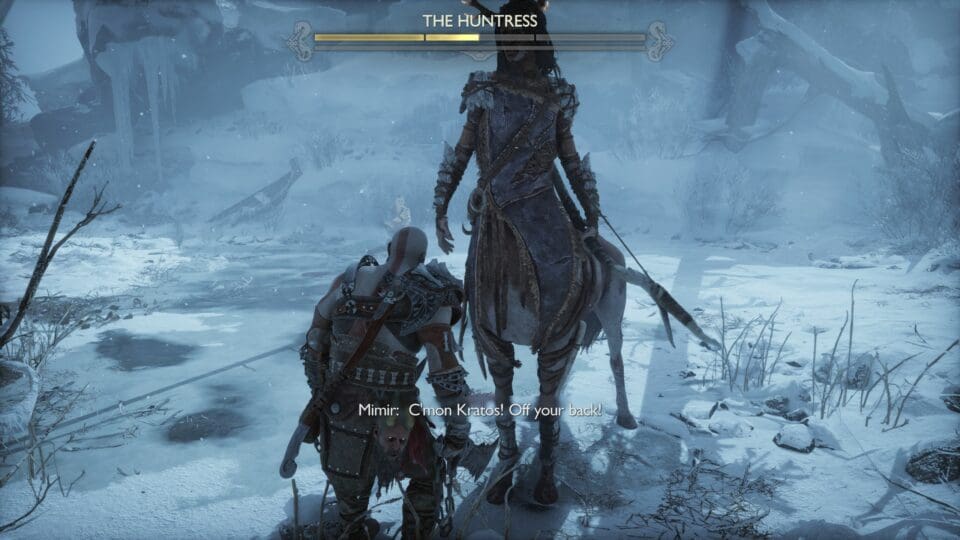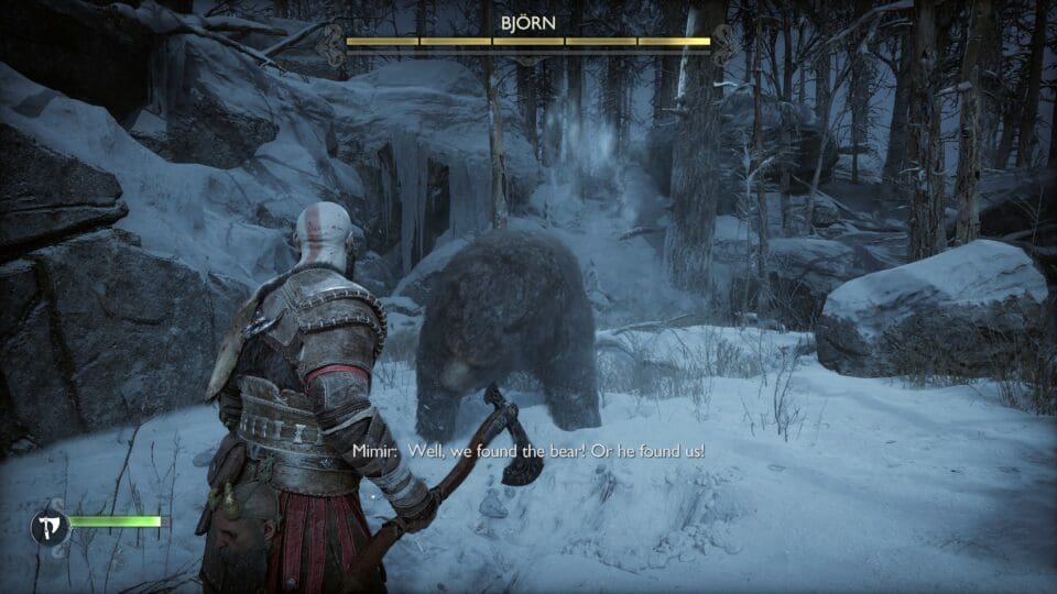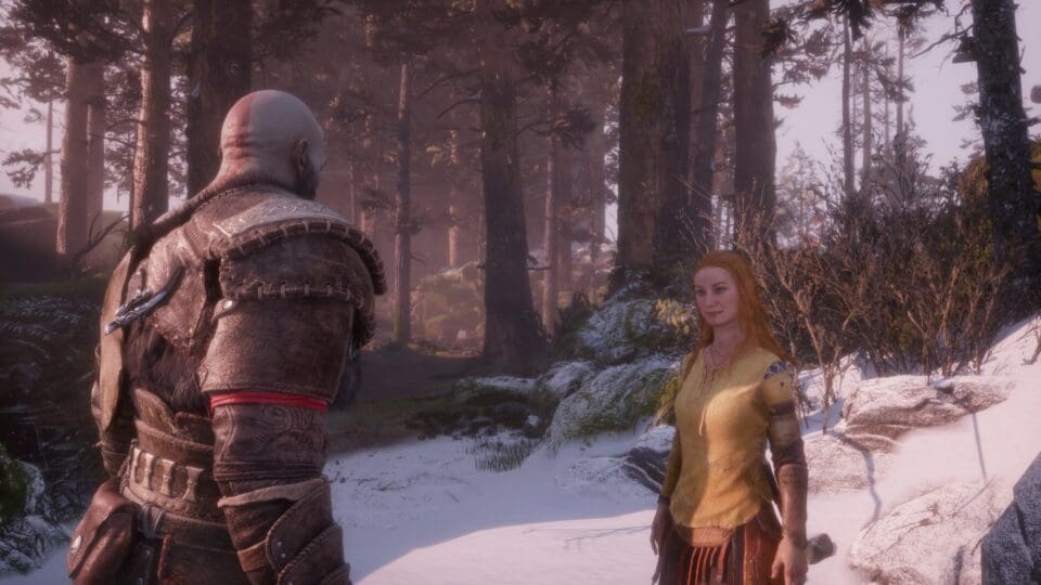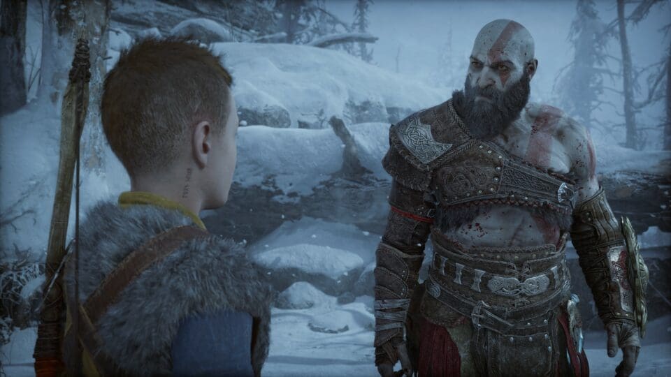 Die Geschichte macht dort weiter, wo sie in Gods of War geendet hat. Wer den (empfehlenswerten) Vorgänger nicht gespielt hat, kann sich im Startmenü des Spieles eine Zusammenfassung der bisherigen Story anschauen. Zu Beginn des aktuellen Spieles verstecken sich Kratos, der ehemalige Gott des Krieges, und sein Sohn Atreus in den winterlichen Nordlanden, bei ihnen in der Holzhütte haust auch noch der etwas bewegungseingeschränkte, aber sehr eloquente Mimir. Freya treibt sich auch in der Gegend herum und ist irgendwie sauer auf Kratos, nachdem er (im Vorgängerspiel) ihren Sohn getötet hat. Sie würde Kratos gerne umbringen und versucht dies auch bei jeder sich bietenden Gelegenheit. Daneben machen noch zu Tieren gewordene Wildmänner die Gegend unsicher. Der Lieblingswolf von Atreus, Fenrir, ist schwer krank, und überhaupt macht der pubertierende Atreus seinem Vater Kratos das Leben schwer und will einen Ortswechsel. Kratos ist zerrissen vor Trauer um die Mutter von Atreus und seinem Wunsch, den gemeinsamen Sohn zu beschützen.