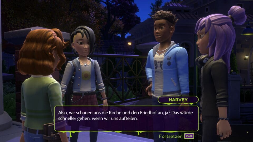 Alle Texte sind übersetzt, die Sprachausgabe ist jedoch nur auf englisch verfügbar. Das könnte für die beabsichtigte Zielgruppe – Kinder und Teenager – ein Problem sein. Aber was soll’s, ich habe mein Englisch damals auch vor allem durch Computerspiele gelernt. Das waren zwar noch die Textadventures von Infocom, hat aber super funktioniert. Da soll noch jemand sagen, Computerspiele führen zu Verblödung! Grafisch ist Goosebumps: Terror in Little Creek solide, aber kein extrem aufwendiges Spiel. Die Texturen sind ok, aber nicht mehr. Erwartet kein Raytracing oder realistische Wasserdarstellung und aufwändige Charakteranimationen. Schaut eher manchmal ein wenig wie auf PlayStation 2 oder Xbox 360-Niveau aus. Dafür braucht ihr aber auch keinen hochgezüchteten Spielerechner für eine ordentliche Performance. Das Spiel ist neben dem PC auch für PlayStation, Xbox und Switch erhältlich.