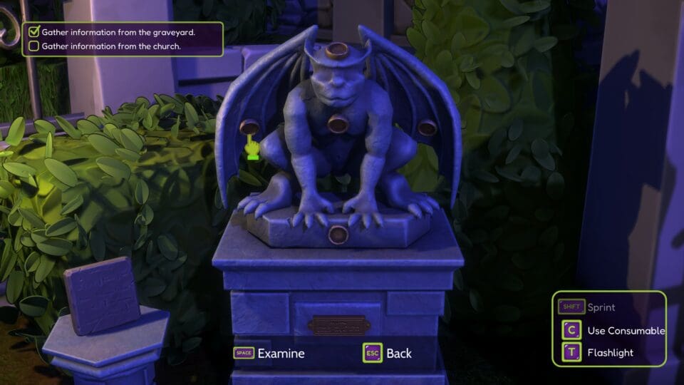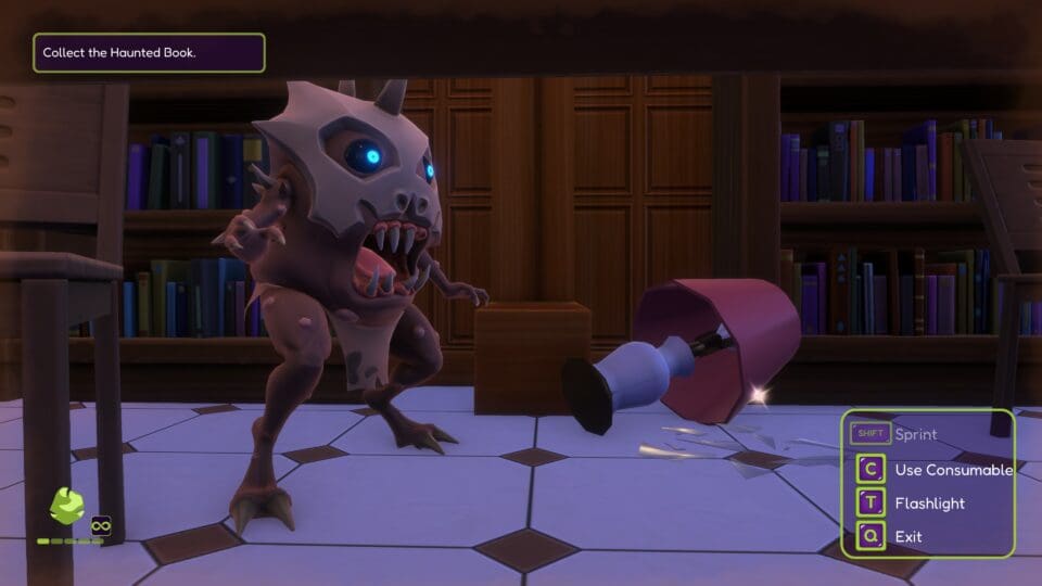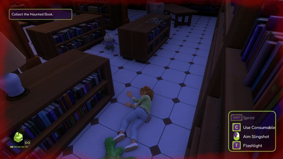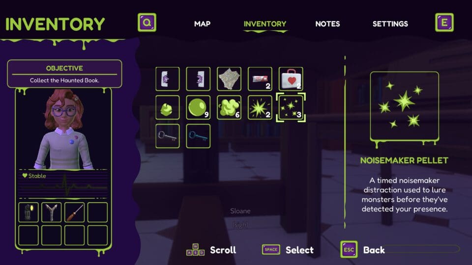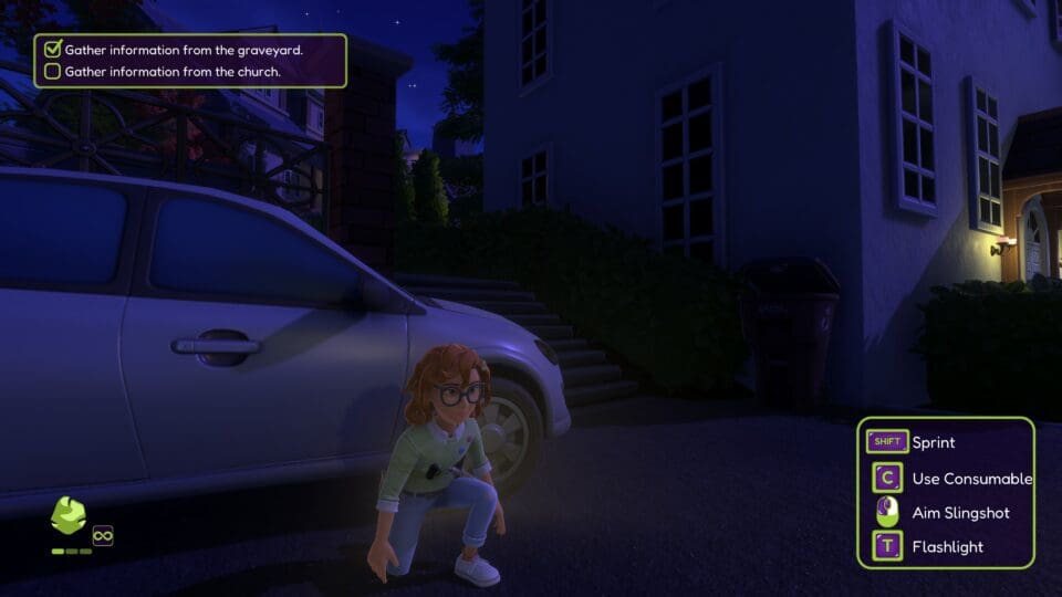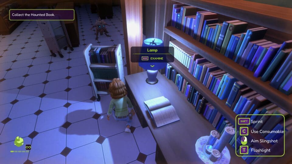 Das Spiel zeichnet automatisch eine Karte mit. Ihr habt ein Inventar mit den ganzen Gegenständen, die ihr im Laufe des Spieles findet. Das können notwendige Gegenstände wie eine Schaufel, oder Verbrauchsgegenstände wie Snacks, Medkits und verschiedene Munitionsarten für eure Steinschleuder sein. Hier seht ihr auch euren Gesundheitszustand. Schon bald begegnen euch diverse Monster – die ihr mit eurer Steinschleuder bekämpfen könnt. Oder ihr schleicht an ihnen vorbei. In Mistkübeln, Kästen oder unter Tischen könnt ihr euch auch verstecken. Eine Kristallkugel gibt Hinweise zur Lösung des nächsten Rätsels. Das Gameplay orientiert sich an den Action-Adventures für ältere Spieler – alle wesentlichen Spielmechaniken sind vorhanden. Kämpfe, Stealth, Inventarmanagement, dazu einige Rätsel, gruselige Sounds – nur eben alles in ein wenig entschärfter Form. Gegner schlagen nicht fest zu und suchen euch nicht sonderlich lange, wenn ihr sie abgeschüttelt habt.