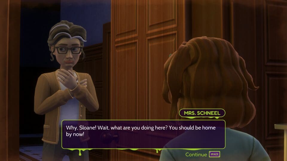 Goosebumps: Terror in Little Creek ist ein Action-Adventure. Wir spielen Sloane Spencer, ein Mädchen im Teenageralter, die zusammen mit drei ihrer Freunde die seltsamen Vorkommnisse in ihrem Heimatort untersucht. Unerklärliche Dinge sind in der Kleinstadt Little Creek passiert – und die Polizei hat eine Ausgangssperre verhängt und außerdem alle Postings auf allen sozialen Medien ebenso wie den normalen Nachrichten zensuriert. Aber die Teenager haben dennoch mitbekommen, dass in der alten Bibliothek und am Friedhof irgendwas nicht mit rechten Dingen zugeht. Also sind sie in der Nacht aus ihren Häusern geschlichen, um sich vor Ort ein Bild der Situation zu machen.