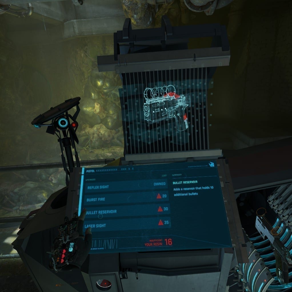 Früher oder später lassen sich Konflikte mit Combine-Soldaten und der menschenunfreundlichen Alien-Fauna in Form von Headcrabs und Zombies nicht mehr vermeiden. Wer jetzt hofft auch das ikonenhafte Brecheisen schwingen zu dürfen, wird leider enttäuscht. Alyx ist weniger martialisch als ihr männliches Gegenstück und verlässt sich lieber auf Pistole, Shotgun und später auch SMG. Tatsächlich hat man bei Valve lange überlegt, auch Nahkampfwaffen wie eben den roten Dauerbrenner einzubauen, war mit den verschiedenen Umsetzungsvarianten aber nie ganz zufrieden. Daher wird geschossen – ohne fixes Fadenkreuz, nach Augenmaß, über Kimme und Korn und später auch mit Ziellaser. Nachgeladen wird semi-manuell: Ein Tastendruck wirft das Magazin aus bzw. öffnet die Kammer. Über die Schulter in den virtuellen Rucksack gegriffen, holt man Magazin / Patronen / Energiezellen hervor und setzt diese(s) ein. Noch mal durchladen bzw. den Schlitten zurückziehen und schon kann das Feuergefecht weitergehen. Das funktioniert – allerdings erst nach etwas Training – auch in der Hektik des Kampfes gut. Im Notfall hilft auch ein Griff zu einer rumliegenden Granate. Scharfmachen und dann beherzt, aber mit Gefühl in Richtung Gegner werfen.