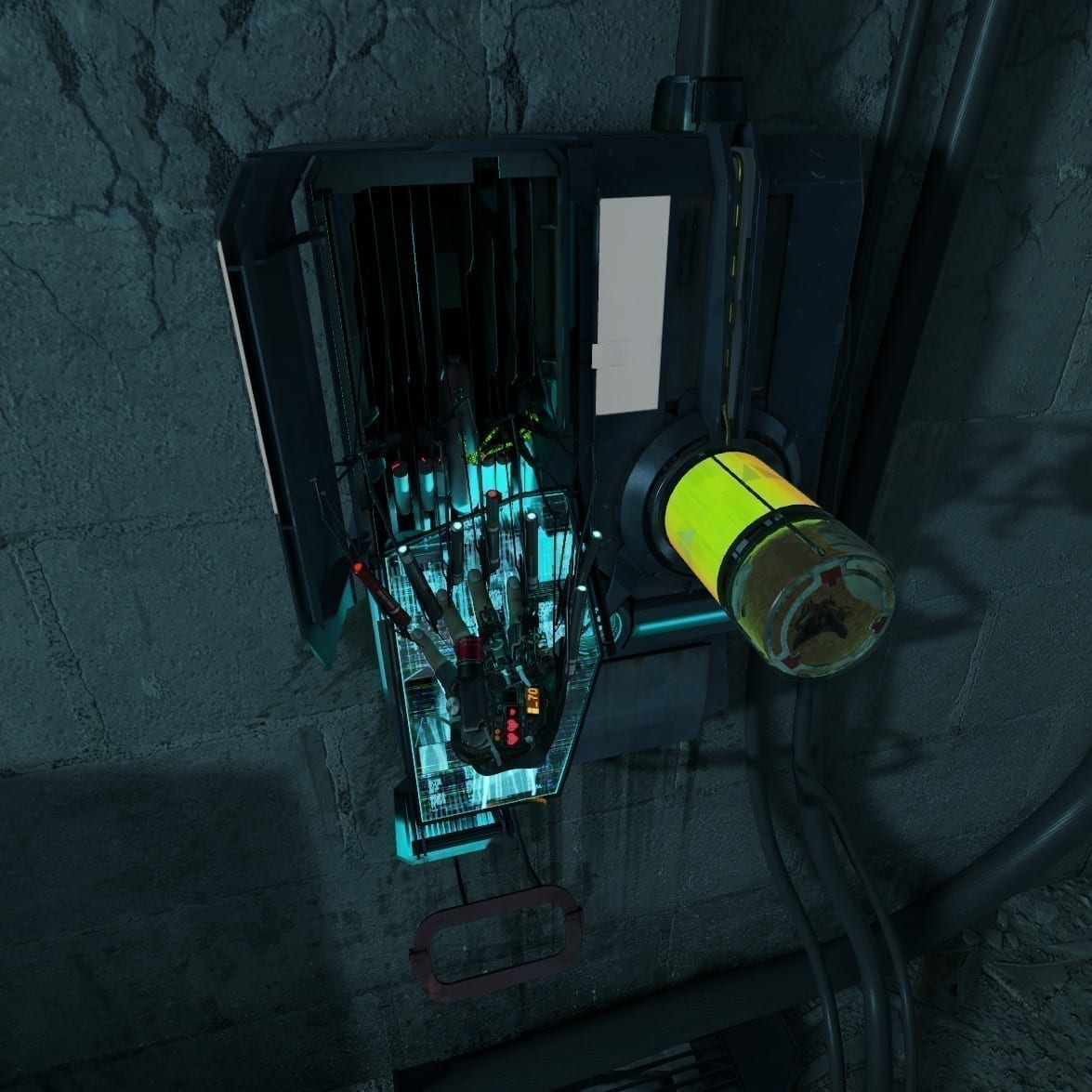 Apropos Granatenwerfen: Alyx wäre kein echter Half-Life-Titel, wenn man mit der Physik der Spielwelt und ihren Bestandteilen nicht interagieren könnte. Neben den für geübte VR-Spieler offensichtlichen Möglichkeiten Objekte zu greifen, tragen, schieben usw. ist es vor allem ein Paar ganz spezielle Handschuhe, das schnell zu einem unserer wichtigsten Werkzeuge wird. Überhaupt nicht narzisstisch von ihrem Erfinder nach sich selbst benannt, sind die „Russells“ offensichtlich eine Zwischenstation bei der Entwicklung der Gravity Gun, die wir aus Teil 2 kennen. Mit der Handfläche in Richtung eines (nicht zu großen) Objekts deuten, mit dem Trigger fixieren und mit einer schellen Bewegung des Handgelenks fliegt das Objekt in Richtung Handfläche und kann elegant aus der Luft gepflückt werden. Das hilft enorm bei der Suche nach Munition und anderen Ressourcen und mit etwas Geschick kann man unachtsamen Gegnern sogar das eine oder andere Magazin oder die gelegentliche Granate aus der Ferne stibitzen. Außerdem kommt die Mechanik natürlich auch beim einen oder anderen Rätsel zum Einsatz und am aller Wichtigsten: Es macht einfach Spaß Dinge auf Kommando durch die Luft fliegen zu lassen.