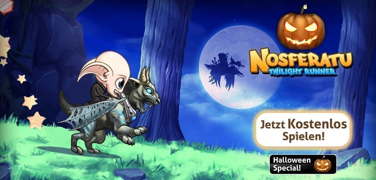 Bis einschließlich 2. November heißt es in Nosferatu – Twilight Runner: Was darf es sein? Süßes oder Saures? Denn während der Flugsequenzen können Nosferatu-Runner ab sofort Erzfeind Dr. Doctor herausfordern, der auf einem gruseligen und Laserstrahlen schießenden Raben das Land unsicher macht. Es gilt den Bösewicht zur Strecke zu bringen, um Belohnungen zu ergattern. Diese wiederum sind jeden Tag mehr Gold und Körperteile eines mysteriösen Halloween-Tierchens. Sind alle gesammelt, lässt sich das Tier beschwören.