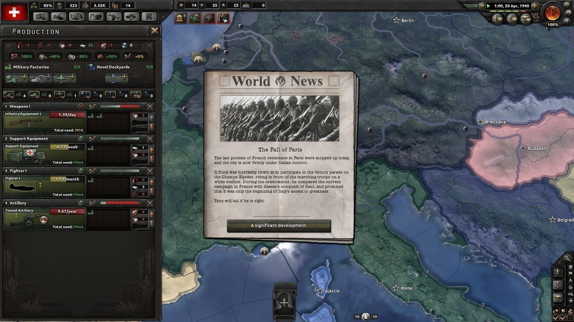 Soviel also zur neuen Einsteigerfreundlichkeit, Hearts of Iron ist und bleibt Hardcore Strategie.. trotz Alibi Tutorials und leichtem „Streamlining“ von Truppenverhalten-/befehligen sowie der vereinfachten Produktionskette.