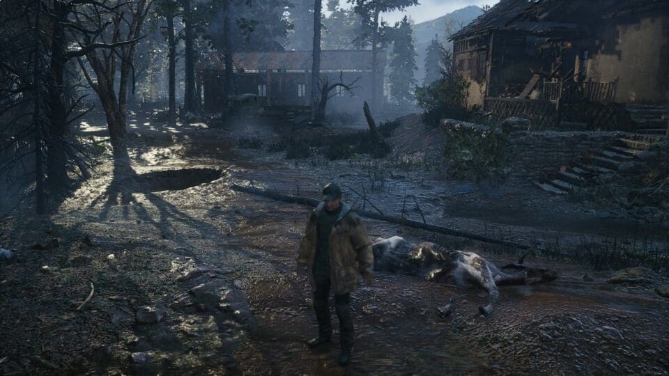 Auch wenn der Titel darauf hindeutet, dass wir Menschen das ärgste Übel dieser Welt sind, scheint die Story aber etwas deutlich anderes zu zeigen. In dem Land begegnet ihr nämlich übernatürlichen Kreaturen, denen moderne Waffen nichts anhaben können. Vielleicht sind die Menschen ja Schuld am Erscheinen dieser Wesen? Und so spielt sich Hell is Us auch bald ähnlich wie ein typisches Soulslike. Mit einem alten Schwert in der Hand und einer Drohne über uns bahnen wir uns den Weg durch die albtraumhafte Welt, um das Rätsel der Herkunft der Monster zu erkunden (und unsere Eltern zu finden). Verglichen mit einem richtigen Soulslike sind die Kämpfe einfacher, dafür aber die Rätsel häufiger und die Gespräche zahlreicher.