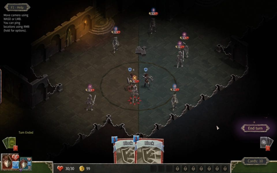 Hellcard ist ein Roguelike. Ihr dringt in ein Dungeon vor, das jedes Mal zufällig generiert wird. Ihr werdet bei euren ersten Versuchen nicht sehr weit kommen, sondern jedes Mal sterben. Allerdings werdet ihr in jedem Durchgang (Run) besser, nicht nur weil ihr selber die Regeln des Spieles besser versteht und daher weniger Fehler macht, sondern auch weil ihr mit jedem erfolglosen Durchgang neue Karten (Artefakte, Begleiter, Emotes) sammelt und damit eure Helden verbessern könnt. Euer Heldenteam hat seine eigenen Stärken und Schwächen, und jeder von ihnen verfügt über ein ständig wachsendes Deck von Fähigkeiten und Ausrüstungsgegenständen, die er auf dem Schlachtfeld einsetzen kann. Damit könnt ihr immer weiter in das Dungeon (insgesamt 12 Ebenen) vordringen, zumindest sofern euch der Zufall bei einem Run nicht gerade total schlechte Karten zuspielt. Roguelike eben.
