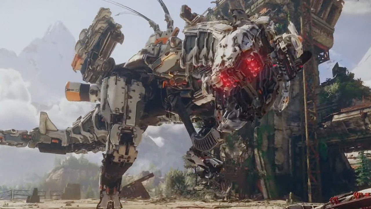 Was wäre Horizon ohne Kämpfe gegen brachiale, metallene Bestien. Die Maschinen haben’s auch hier wieder ordentlich auf uns abgesehen. Wir aber auch irgendwie auf sie, zumindest wenn wir wieder einmal Bauteile brauchen um Dinge zu reparieren. Teile für Munition finden wir am Wegesrand schön in Kisten und Fässern platziert. Ebenso Pfeile. Dafür müssen wir die Maschinen also nicht jagen. Auch wieder ein kleiner Unterschied zu den anderen Teilen der Reihe. Nicht so aber die Kämpfe. Die laufen ab wie eh und je. Mit bestimmten Pfeilen feuern wir auf bestimmte Körperteile der Maschinen. Ob wir sie in Brand setzen oder mit einem Elektroschock betäuben sollten ist dabei von ihren jeweiligen Schwächen abhängig. Greifen die Maschinen an, können wir uns ducken oder ausweichen in dem wir die Controller zur Seite reißen. Das funktioniert eigentlich ganz gut. Kommen aber mehrere Gegner gleichzeitig auf uns zu, beißen wir definitiv das ein oder andere Mal ins Gras.