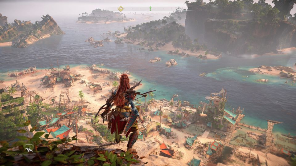 Der eigentliche Star ist hier wieder einmal die Spielwelt selbst. Fotomodus sei Dank können Gamingfotografen wieder Stunden über Stunden in der Welt von Horizon versinken. Aber auch ich als reiner Gamer habe mich mehrmals ertappt wie ich die grünen Wellen beobachtet habe, wenn sie kurz vor dem Strand brechen und zu Weißwasserwellen auslaufen. Laut dem Entwicklerteam konnte die Grafik noch einmal um ein ganzes Stück verbessert werden, da man keine Rücksicht mehr auf die Last-Gen nehmen musste.