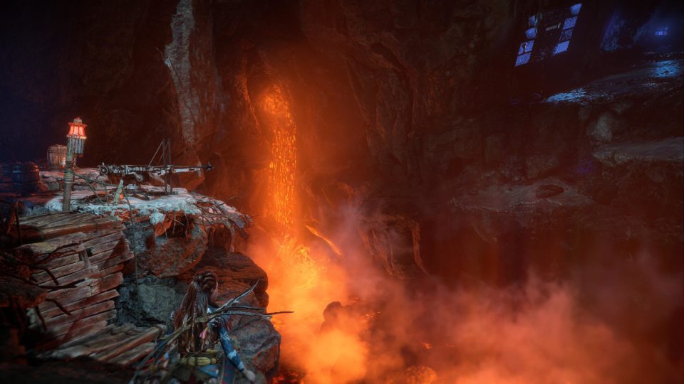 Wir erkunden das ehemalige Los Angeles welches von den heutigen Bewohnern nur noch „Burning Shores“ genannt wird. Verfallene Wolkenkratzer umhüllt von Pflanzen, Lavaströme zwischen den Gebäuden und wunderschöne Strandabschnitte sorgen hier für eine ganz besondere Atmosphäre. Abgerundet wird das Bild durch rostige Ampeln und Autowracks. Stellenweise bietet sich durchaus der Vergleich mit The Last of Us an. Als ganz besondere Neuheit sollten die Wolken erwähnt werden. Ja ihr lest richtig, Wolken. Darauf sind die Entwickler*innen sehr stolz und das zurecht. Dank des Voxel-Wolken-Rendering, welches nach Abschluss der Arbeiten zu Forbidden West programmiert wurde, können Wolken nun detailgenau berechnet und dargestellt werden. Es werden also keine fertigen 3D-Modelle ins Spiel eingefügt. Und diese „verbesserten“ Wolken können sich wirklich sehen lassen. Es erinnert tatsächlich an den Blick aus einem Flugzeug.