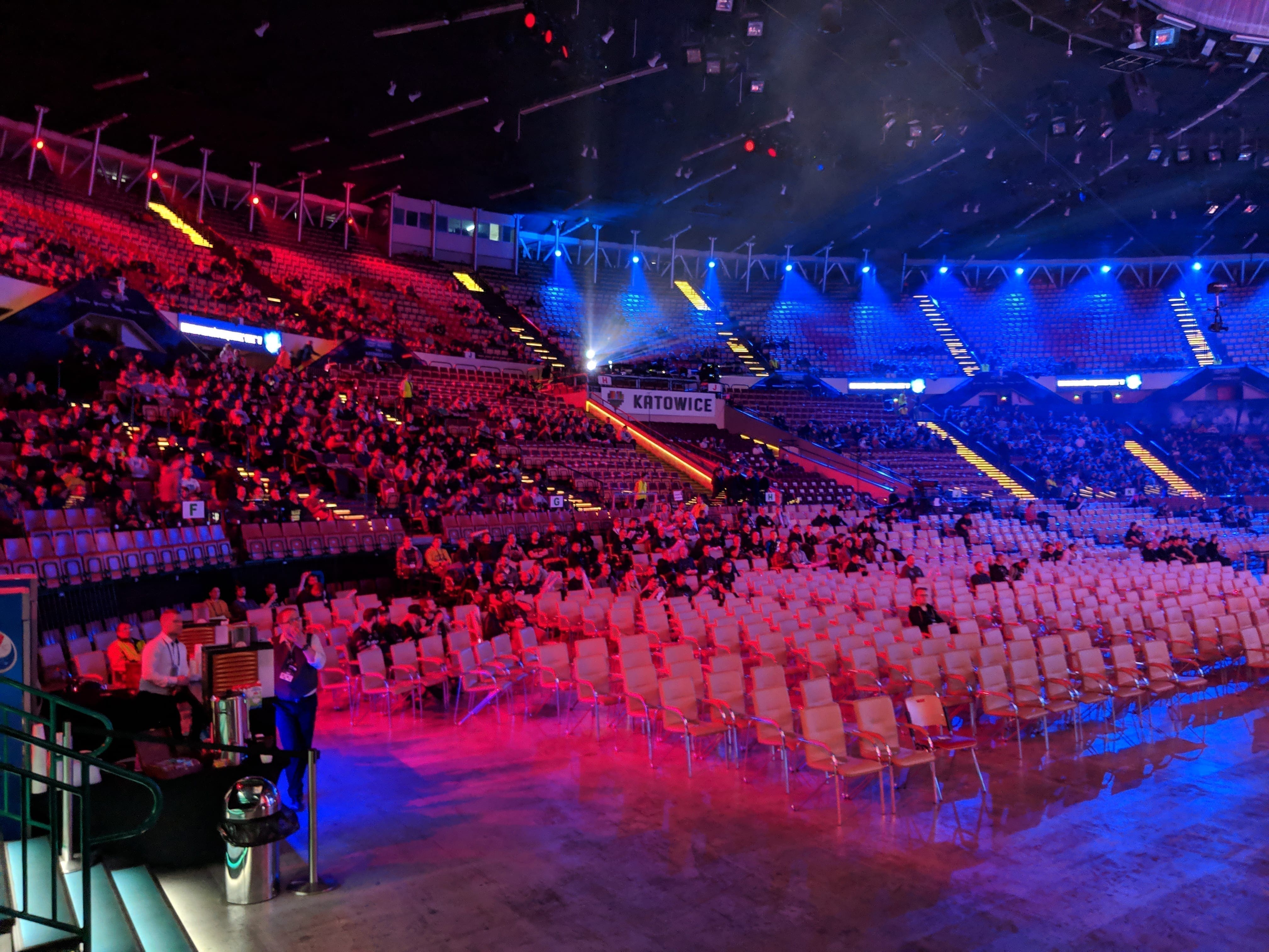 Wie auch im klassischen Sport werden auch hier die Spieler live im Internet, sogar teils im Fernseher übertragen. Im Zuge einer Führung durch das Spodek, konnte ich auch hinter die Kulissen blicken: In der Arena befinden sich professionelle Kommentatoren vor Ort, die das Geschehen in der Übertragung mit ihren Analysen untermalen. Hinzuzufügen ist, dass dies nicht nur in Englisch, sondern gesamt auch über 20 Sprachen passiert. Auch zur Live-Bearbeitung des Videomaterials sind eine Menge Mitarbeiter vor Ort. Man sieht, hier tut sich einiges. In der Arena selbst sind dutzende Kameras platziert, davon fast alle auf die Spieler gerichtet, um Zuschauern auch Videomaterial vom Austragungsort bieten zu können. Am Austragungsort sitzen dann die zwei Parteien, begleitet von ihren Coachs, jeweils gegenüber auf den Geräten. Möge die Schlacht beginnen!