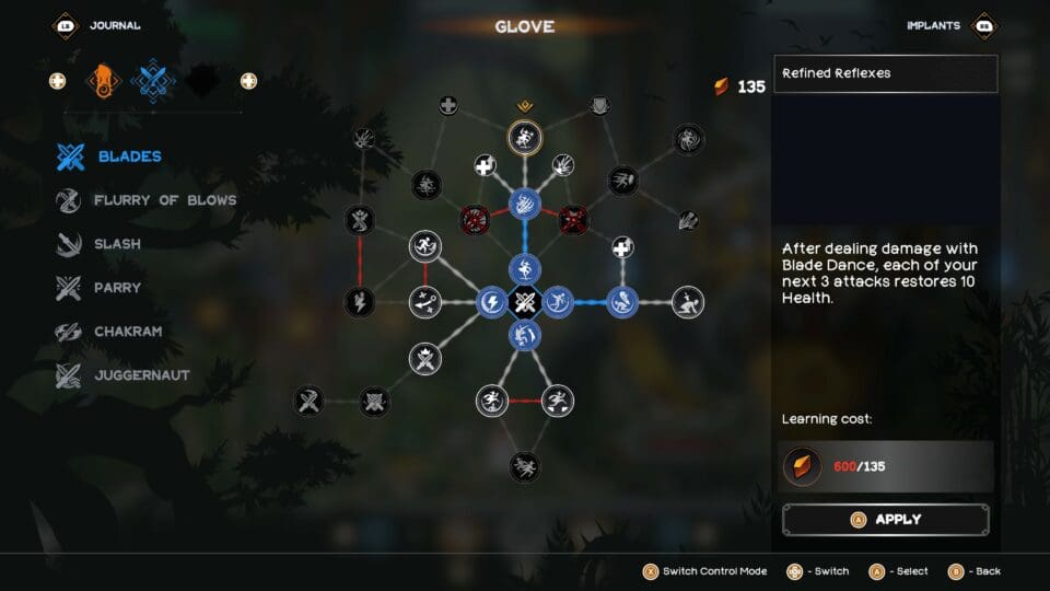 Der Fähigkeitenbaum zur Verbesserung eurer Heldin ist überaus umfangreich. Für jede der drei Waffen gibt es dutzende Upgrades zu erwerben – mit der im Spiel gefundenen Währung. Dazu kommen noch Implantate zur Verbesserung eurer Heldin, die ihr an besonders gut versteckten Orten finden könnt. Hier müsst ihr euch aber entscheiden, welche Implantate ihr einsetzt, ihr könnt nur eine bestimmte Anzahl gleichzeitig aktivieren.