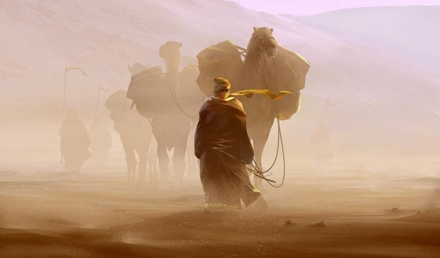 Welt und Setting des Spiels sind angelehnt an Geographie und Historie des Orients. Spieler bereisen Gegenden auf der arabischen Halbinsel. Ständig kommen neue Mitglieder, Helden und Kamele hinzu: Die Karawane der Spieler wächst stetig. Zum Management gehören das Verwalten aller benötigten Ressourcen wie etwa Wasser, Verpflegung, oder natürlich auch der Transporttiere selbst. Zudem kümmern sich die Spieler darum, lukrative Handelsmöglichkeiten aufzutun, Ressourcen und Rohmaterialien günstig einzukaufen, und herauszufinden, wo sie diese zum besten Preis wieder verkaufen können.