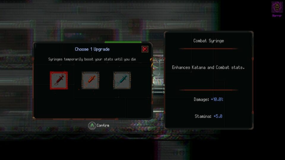Mit gefundenen Plasmazellen kauft ihr während einem Run nützliches Equipment, mit Void Kristallen verbessert ihr euren Charakter im Hub. Die prozedural generierten Levels sind voll mit Gegnern, die immer wieder Skills fallen lassen – von denen ihr aber immer nur zwei gleichzeitig einsetzen könnt. Ein Schlag auf den unbenutzten Skill, und ihr verwandelt ihn in Währung. Über Vektoren (Schnellreiseportale) bewegt ihr euch blitzschnell im Level herum. Pixelgrafik, Synthwave-Soundtrack, flottes Gameplay – wer lieber bedachtsam vorgeht, ist bei Katanaut fehl am Platz. Hier spritzt das Pixelblut und raucht der Joystick – Controller werden selbstverständlich unterstützt.