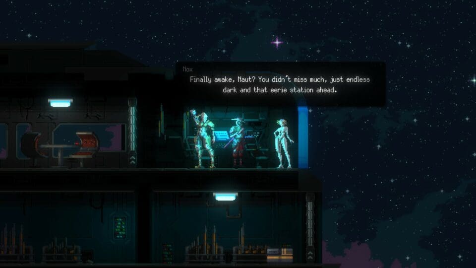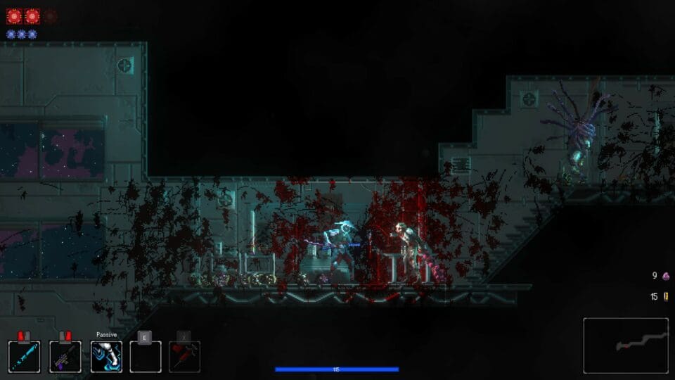 Die Handlung spielt auf einer riesigen Raumstation mit ursprünglich Millionen von Bewohnern, die von Zombies überrannt wurde. Ihr seit Naut, ein Söldner der mit seinen beiden Kollegen Carver und Nox zur Station kommt. Mehr Details erfahrt ihr erst während dem Spiel, wo mehrere längere Zwischensequenzen (die auch übersprungen werden können) die Story erläutern. Mit dem Schwert in der Hand tötet ihr die Monster und verbessert euren Charakter kontinuierlich. Ihr schaltet immer mehr Fähigkeiten frei, findet Implantate zur Verbesserung, schaltet bestimmte Perks frei. Natürlich ändern sich auch eure Waffen – euer Schwert (Flash Fang) und eure Pistole sind bald nicht die einzigen zur Verfügung stehenden Waffen. Euer Charakter kann gleichzeitig zwei Skills ausgerüstet haben – da gibt es so nützliche Fähigkeiten wie die Zeit verlangsamen, einen Orb, der euch permanent begleitet und bei Kontakt mit Feinden detoniert, oder einen Angriff, der einen Wirbelwind erzeugt. Wenn ihr den Skill während einem Run noch einmal findet, könnt ihr den bereits bestehenden Skill verbessern.