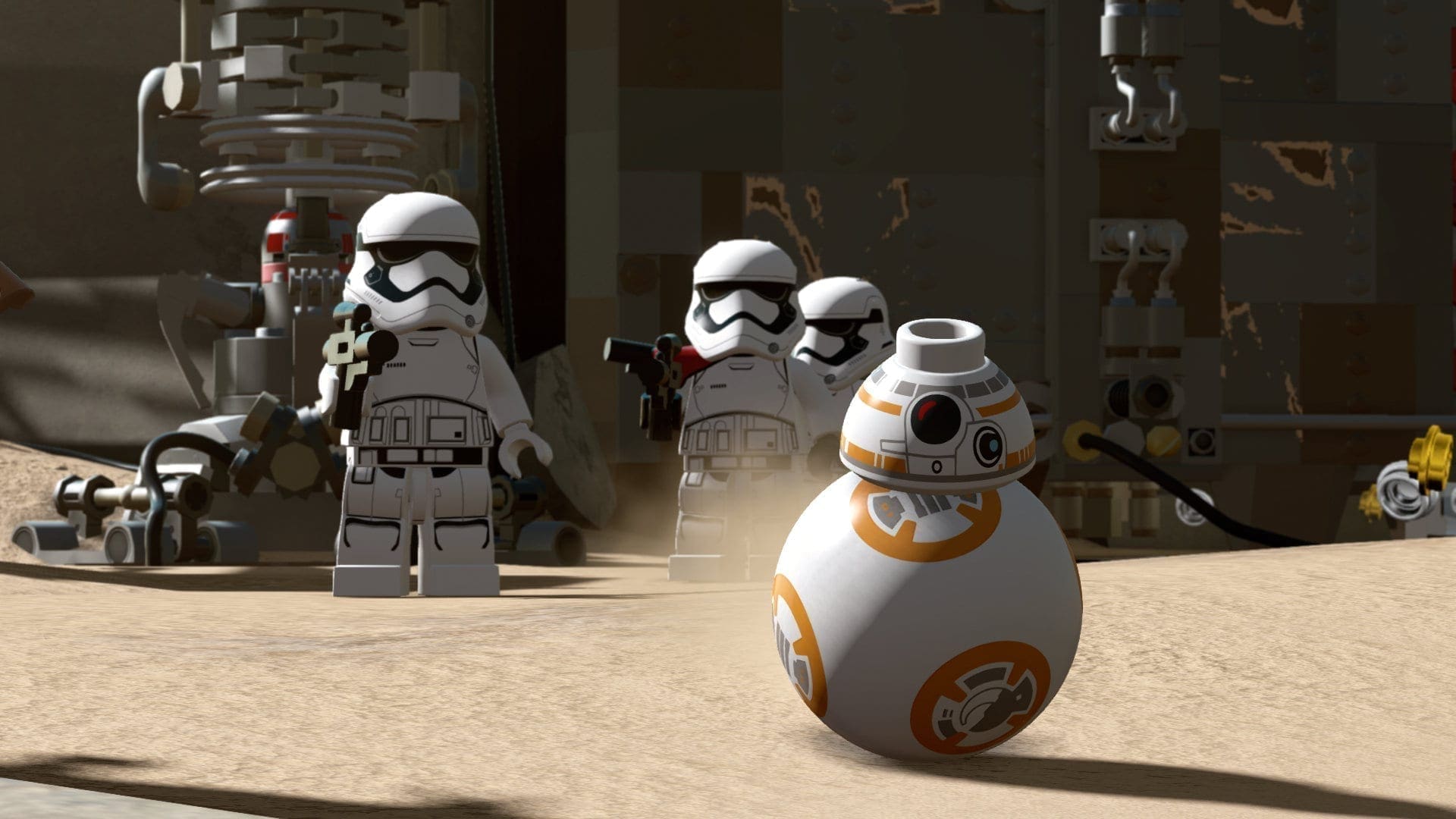 Wie kann man eine Handlung möglichst lange verlängern – ganz einfach in dem man Sequenzen aus der alten Trilogie recycelt und neue Story-Abschnitte hinzufügt. So beginnen wir bei LEGO Star Wars: Das Erwachen der Macht nicht etwa mit Rey auf dem Wüstenplaneten Jakku, sondern starten mit einer Truppe bestehend aus Han, Leia, Chewbacca auf dem Waldmond Endor. Dort spielen wir dann die Schlusssequenz von „Die Rückkehr der Jedi Ritter“ nach und schalten mit Hilfe der Ewoks den Schutzschildgenerator des Todessterns ab. Erst nach diesem Prolog darf man sich auf den Originalschauplätzen der Filmvorlage herumtummeln. Zusätzlich wird die Story mit brandneuen Inhalten der Geschichte aus dem Star-Wars-Universum aus der Zeit zwischen Star Wars: Die Rückkehr der Jedi-Ritter und Star Wars: Das Erwachen der Macht ergänzt. Spielbar sind dabei nahezu alle Charakter aus dem Film, einschließlich Rey, Finn, Poe Dameron, Han Solo, Chewbacca, C-3PO und BB-8 sowie Kylo Ren, General Hux und Captain Phasma.