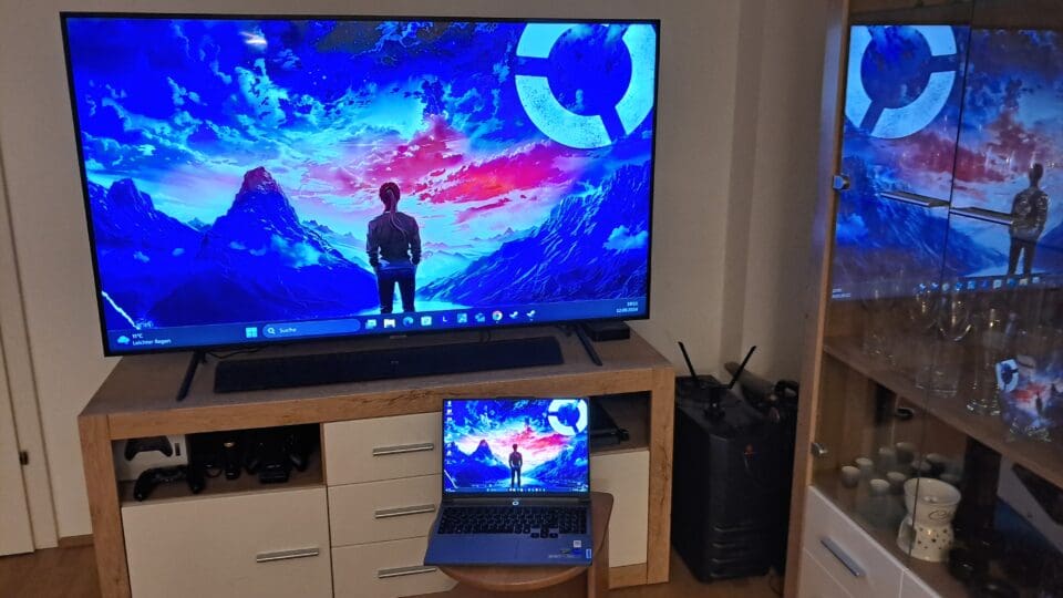 Ich habe mich für einen Lenovo Legion 5i der aktuellen (neunten) Generation entschieden, der mit einer Intel Intel Core i7-14650HX 2.20 GHz Raptor Lake CPU mit einer TDP von 55W versehen ist – auch hier ist der Laptop leistungsfähiger als meine Desktop-Rechner mit ihren AMD Ryzen 5 5500 oder Ryzen 5 5600X CPUs. Die 32 GB DDR 5 – 5600 (Dual Channel) RAM sind nicht schlecht, dazu verrichtet eine Hynix M.2 SSD mit 1 TB Ihren Dienst. Als Betriebssystem ist Windows 11 Home installiert. Die Nvidia GeForce RTX 4070 Grafikkarte ist grundsätzlich über jeden Zweifel erhaben, allerdings handelt es sich hier nicht um die 12GB sondern „nur“ um die 8GB Variante. Besonders beeindruckt hat mich der IPS-Bildschirm. Er ist auch von der Seite klar erkennbar, und seine Auflösung (WQXGA) ist mit 2560×1600 Pixel bei 240Hz und superschnellen Reaktionszeiten unter G-Sync deutlich besser als die meines Gaming Monitors, der nur 2560×1440 bei 144Hz bietet. Zum Spielen ist diese Auflösung auch bei einigen Games besser als mein geliebter Ultrawidescreen Monitor mit 3440×1440 bei 100Hz. Wer auch am Fernseher spielen will, kann den Lenovo Legion i5 dank des integrierten HDMI 2.1 Ausganges auch an den Fernseher anschließen und dort mit 4K spielen – die GPU hat damit kein Problem.