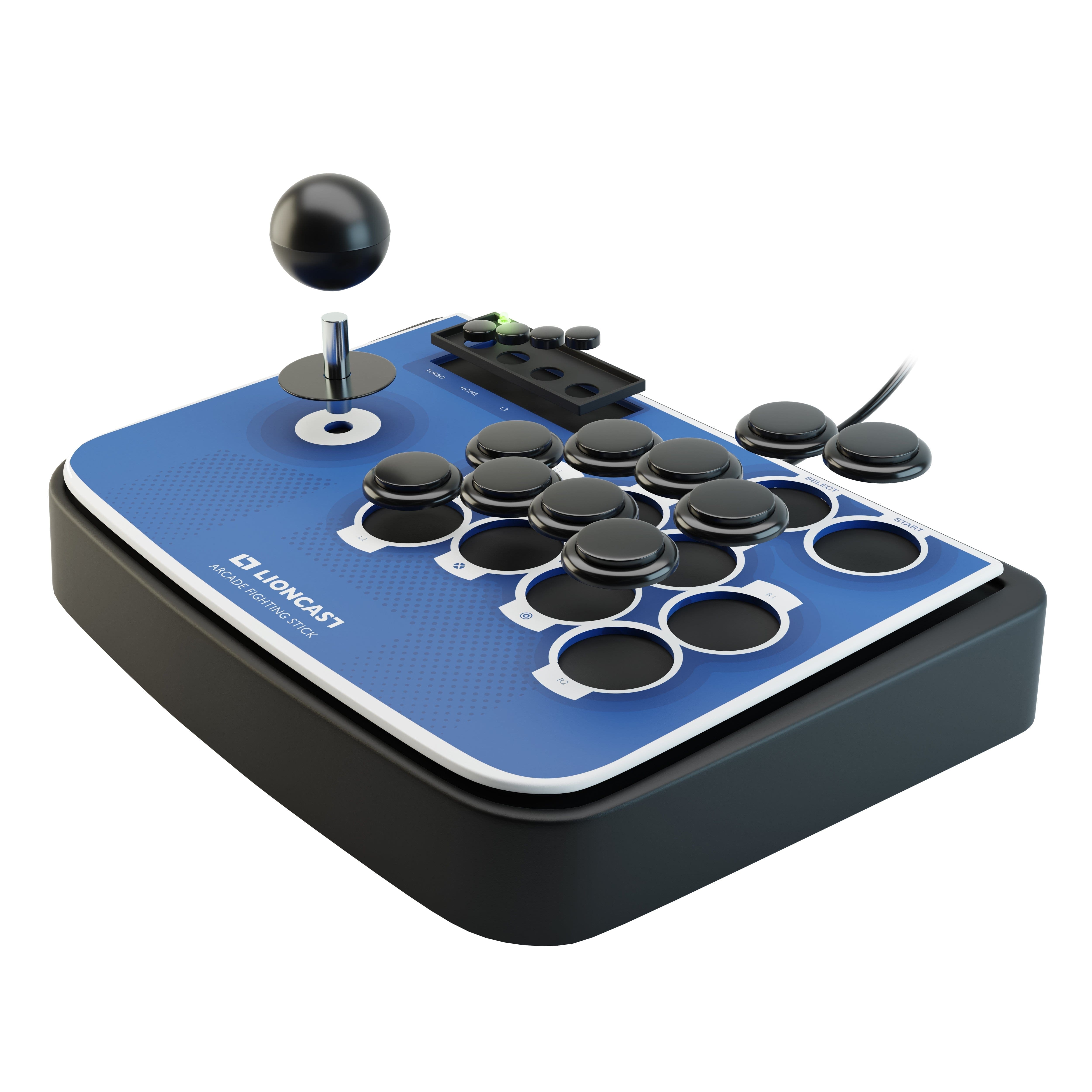 Der neue Arcade-Controller will das Gefühl klassischer Spielhallen-Automaten auf aktuelle Konsolen überträgen und das per Plug&Play. Ihr benötigt keinen zusätzlichen Controller, sodass er sich als perfekte Ergänzung zu bestehenden Setups für Shoot ‚em Up-, Beat ‚em Up- und klassische Fighting-Titel eignet. Durch seine stabile, an der Unterseite verbaute Metallplatte liegt er dank hohen Eigengewichts stets rutschfest auf und ermöglicht so volle Konzentration auf das Wesentliche: das eigene Gameplay. Für Enthusiasten bietet der Lioncast Fighting Stick zudem Modding-Support, eine ultraniedrige Eingabeverzögerung und einen zweistufigen Turbo-Modus, der sich wahlweise auf einzelne oder sämtliche vom Gameplay betroffenen Tasten flexibel anwenden lässt.