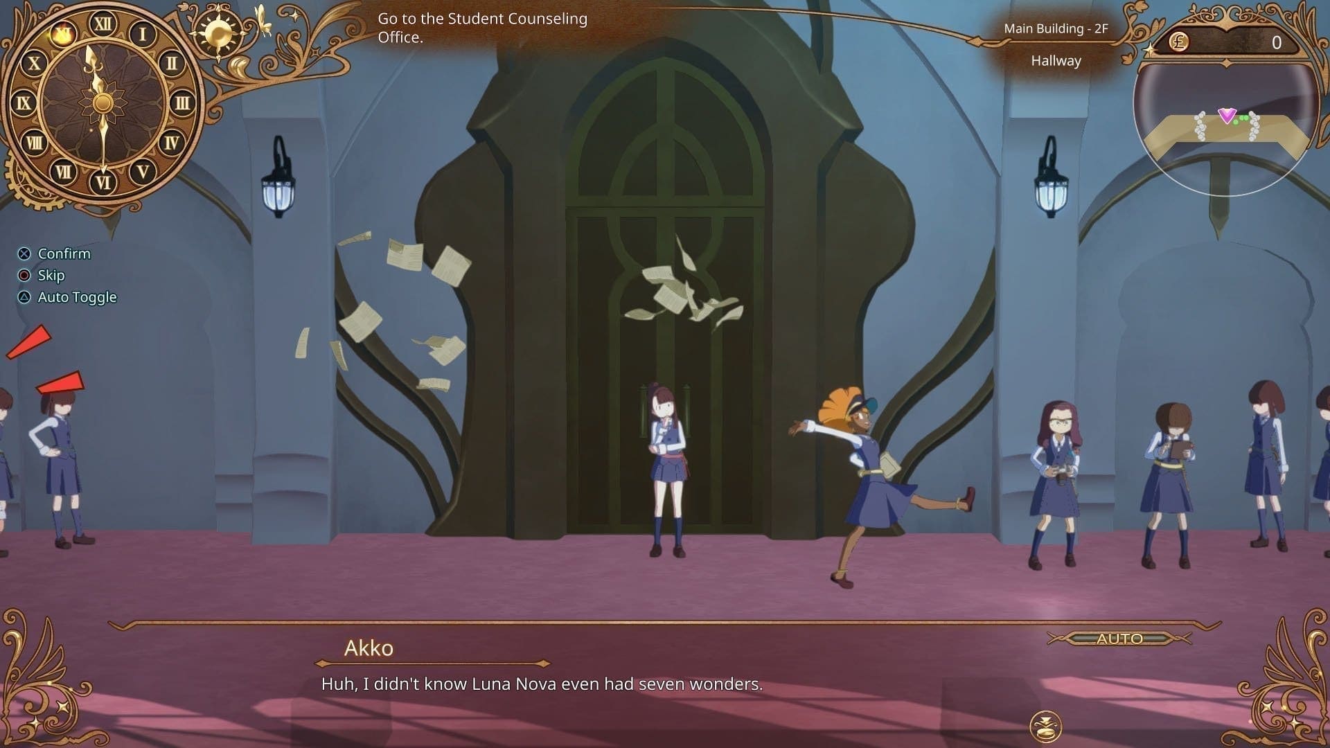 Genau wie in der Serie verfolgt ihr auch in Little Witch Academia: Chamber of Time die Abenteuer der angehenden Hexe Akko, die mit wenig Talent für Magie, dafür umso mehr Talent dafür, sich in Schwierigkeiten zu bringen, versucht, eine der besten Schülerinnen der Luna Nova Witch Academy zu werden. Das Spiel startet dabei am Beginn der Sommerferien der Magie-Schülerin und charaktertypisch hat Akko es wieder einmal geschafft, sich Ärger einzuhandeln. Während alle anderen also in ihre wohlverdienten freien Tage starten, wird die Junghexe dazu verdonnert, die Bibliothek neu zu sortieren – und kann kaum ahnen, dass ihre Probleme damit erst so richtig beginnen. Ein paar unglückliche Zufälle später findet sich Akko nämlich mitsamt einer Handvoll ihrer Studienkolleginnen nicht nur in der mysteriösen Chamber of Time wieder, sondern ist auch in einer Zeitschleife gefangen: Jeden Tag um Mitternacht beginnt der erste Ferientag erneut. Was hätte man auch sonst zu tun, als das Zeit-Raum-Kontinuum wiederherzustellen…