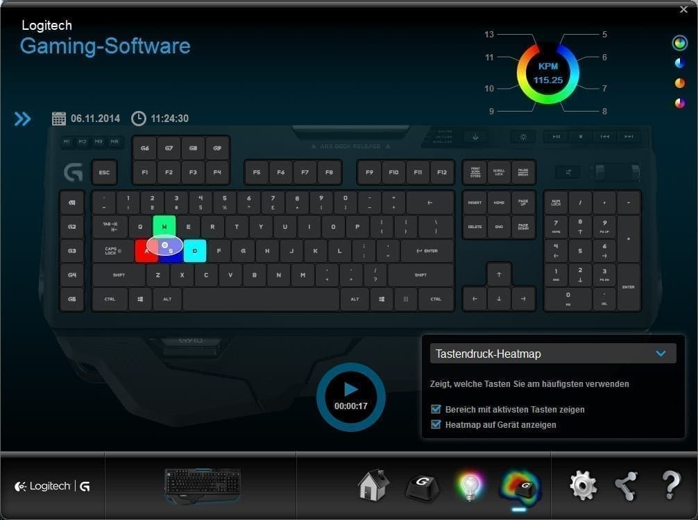Ein ganz witziges Feature der Software ist auch die „Tastendruck-Heatmap„, welche es ermöglicht während einer Spielesession sowohl die am meisten verwendeten Tasten, als auch die Dauer der gedrückten Taste aufzuzeichnen. Damit lässt sich evtl. der eine oder andere Hinweis erkennen wo man die Tastenbelegung für ein bestimmtes Spiel noch optimieren kann.