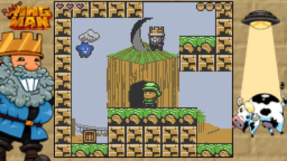 Die Kigman Trilogie ist eine Sammlung aus drei alten Spielen aus der 16-bit Zeit. Ein Video über die Entstehung der originalen Spiele könnt ihr euch direkt im Spiel ansehen, oder auch hier auf YouTube, eine herrliche Mock… ähm, Dokumentation. Darin erfahrt ihr mehr über die millionenfach verkauften Spiele auf Konsole, Handheld oder auch dem Amiga. Keine Ahnung, warum ich mich an die Spiele von damals nicht erinnern kann. Die Remakes auf Steam sind originalgetreu auf den PC portiert. Es handelt sich um 1-Screen Puzzler. Ihr müsst Münzen sammeln und sie eurem Lehensherren bringen, um ins nächste Level zu gelangen. Wenn ihr den Bildschirm rechts verlasst, kommt ihr links wieder ins Bild. Wenn ihr unten aus dem Bild fallt, kommt ihr oben wieder ins Spiel. Kisten werden mit eurem Schwert geöffnet, Gegner damit eliminiert, spitze Zacken solltet ihr meiden. Was recht einfach beginnt, wird bald verdammt anspruchsvoll und verlangt neben Hirnschmalz auch pixelgenaue Sprünge und schnelle Reaktionen.