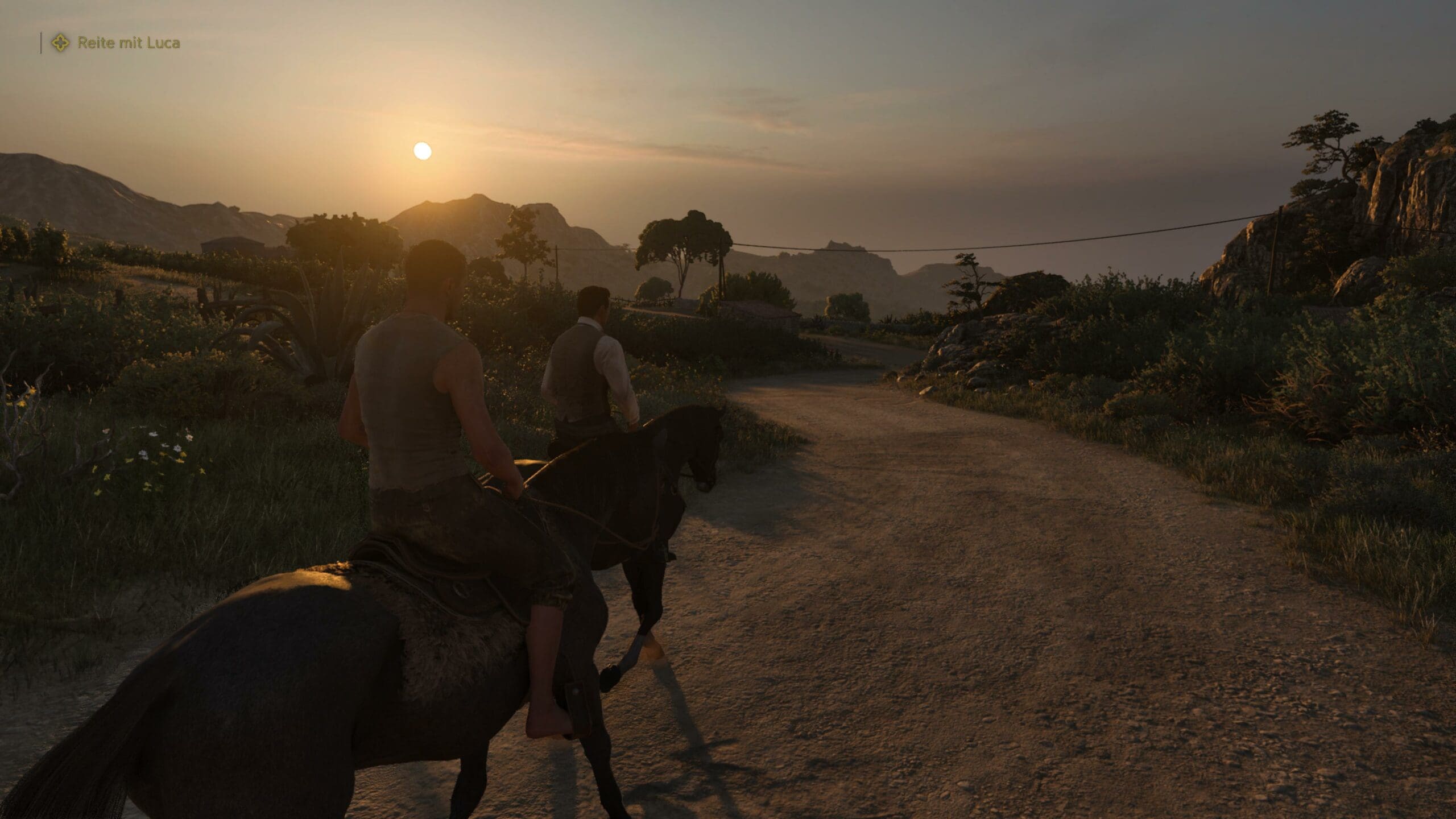Die Welt von Mafia: The Old Country ist wirklich schön geworden, wenn auch etwas leer. Ich habe die Reitpassagen durch die Landschaft und die Hafengegend sehr genossen und sie auch nie übersprungen. Während dieser Abschnitte erfahren wir mehr über die Charaktere, die Spielwelt und das Sizilien zu dieser Zeit. Da das Hauptaugenmerk hier aber auf der Story liegt, bin ich sehr froh über die wirklich gelungene Lokalisation. Die deutsche Ausgabe kommt im Gegensatz zur englischen auch ohne italienischen Akzent aus. Die original sizilianische Sprachausgabe hat aber einen ganz besonderen Flair. Wie auch ein Yakuza-Game auf Japanisch einfach mehr fetzt, empfehle ich auch hier die sizilianische Version.