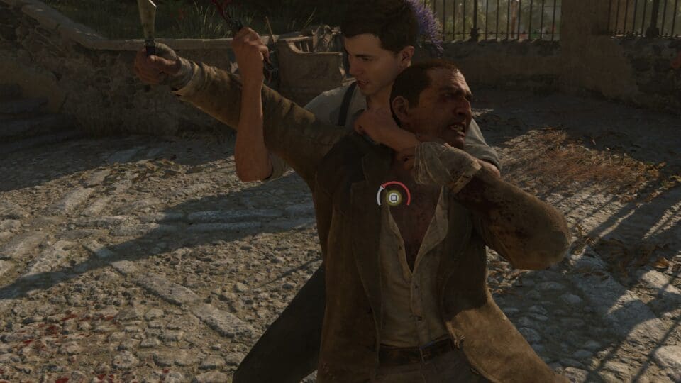 Spannend sind auch die, naja, nennen wir es Bosskämpfe. Die laufen immer in Form von Messerduellen ab. Wieso Messer, fragt ihr? Messer haben in der sizilianischen Kultur und ihrer Geschichte eine große Bedeutung. Nicht nur waren sie so eine Art Statussymbol, sie wurden tatsächlich genutzt, um Duelle auszutragen. Mit dem Geld, das wir durch die Sammelaufgaben verdienen, können wir nicht nur Autos, Kleidung oder Schusswaffen kaufen, sondern eben auch Messer. Unterschiedliche Messer haben unterschiedliche Fähigkeiten. Während die eine Klinge es ermöglicht, Gegner mit einem Messerwurf auszuschalten, sorgt eine andere für einen Sofortkill bei Nahangriffen. Ihr müsst eure Klinge auch mit Wetzsteinen scharf halten, was sie nicht zu irgendeiner Nebenwaffe macht.