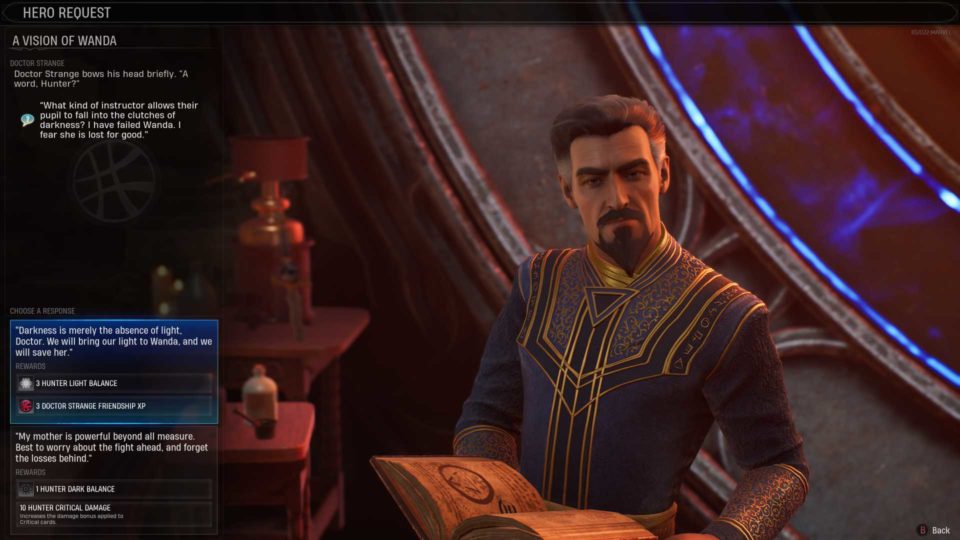 Marvel’s Midnight Suns fesselt vor allem durch seine spannende Geschichte und die kurzen Level. Es hat in mir das „Ein-Level-geht-noch Syndrom“ neu aufflammen lassen. Die Motivation die Nebenmission zu spielen oder Belohnungen zu farmen leidet unter dem hin- und herlaufen in der Abtei. Wäre eine Möglichkeit vorhanden aus dem abgeschlossenen Level direkt wieder in die Levelauswahl zu springen, wäre dies deutlich spaßiger.