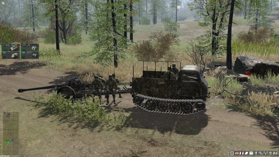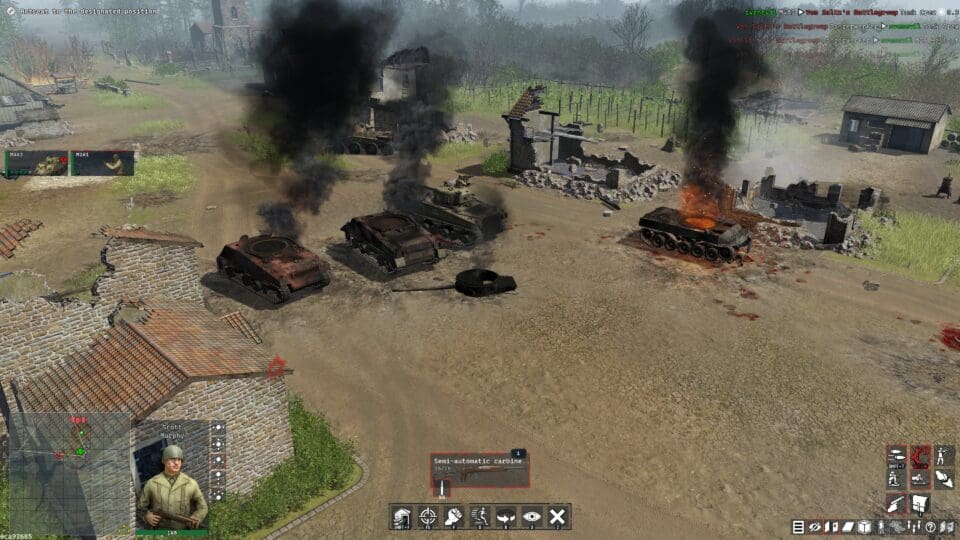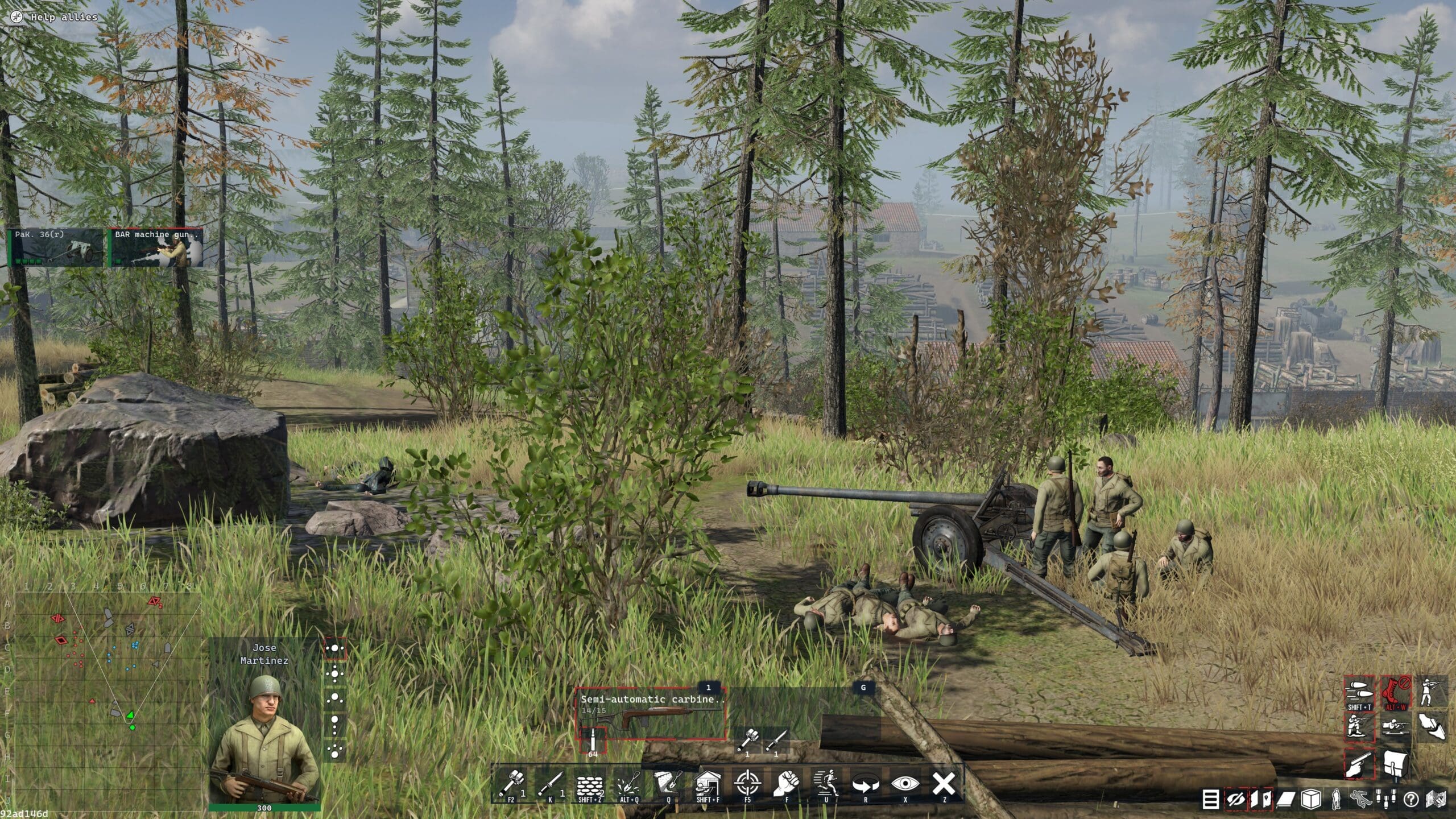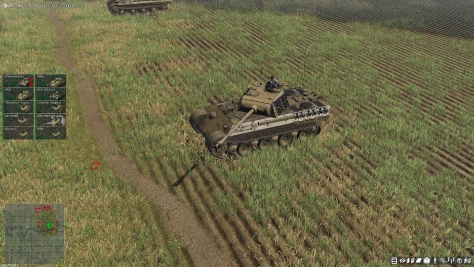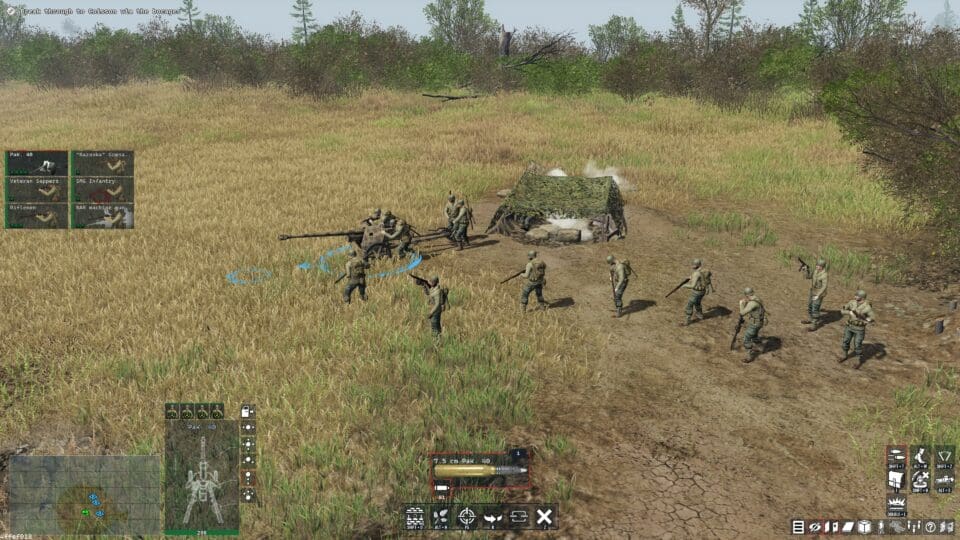 Ich rede hier von einem Soldaten, den ich beispielsweise vorgestellt habe. Andere Soldaten haben andere Ausrüstung und Fähigkeiten, und es hängt auch von der Umgebung ab, was ihr gerade tun könnt. Verletzte Soldaten verarzten, sich hinter Deckung verschanzen, sich hinlegen, sich in einem Gebäude verbergen. Ihr könnt jeden Soldaten auch auf unterschiedliches Gerät loslassen, also auf Kanonen oder Fahrzeuge. Dabei reicht im Regelfall ein Mann natürlich nicht, um ein Gerät zu bedienen. So eine Panzerabwehrkanone benötigt mehrere Mann, um ordentlich ballern/nachladen zu können oder bewegt zu werden. Ihr könnt sie auch von diversen Fahrzeugen (oder von Pferden) ziehen lassen. Auch ein Panzer braucht auch eine unterschiedlich starke Crew, um alle Möglichkeiten ausnützen zu können. Der Fahrer alleine kann nicht gleichzeitig fahren und die Hauptkanone bedienen und mit dem Maschinengewehr feuern…