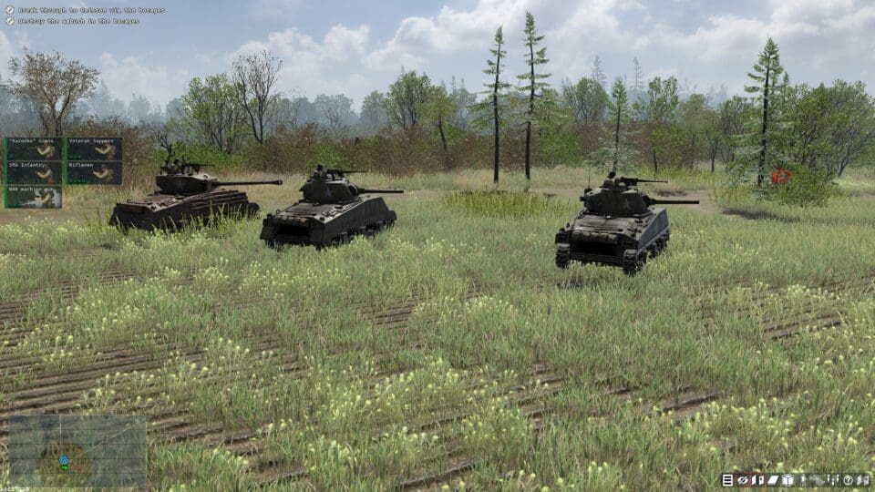 Dazu gibt es auch zwei jeweils sieben Missionen langen dynamische Kampagnen. Einerseits spielt ihr die russische Offensive in Weißrussland, andererseits die Alliierte Offensive nach der Landung in der Normandie. Dazu gibt es noch mehrere Einzelmissionen ohne weiteren Kontext, dazu Mehrspielermissionen, die ihr gegen den Computergegner spielen könnt (Skirmish-Modus). Schließlich gibt es noch den Raid-Modus, eine dynamische Kampagne mit 16 Missionen gegen den Computer und schlussendlich den Conquest-Modus – hier spielt ihr auf einer Übersichtskarte ein rundenbasiertes 4X Strategiespiel. Insgesamt sollte das ordentlich Stoff für jeden Spieler bieten, der kein Interesse am Mehrspielermodus hat. Jede einzelne Mission aus dem Einzelspielermodus kann übrigens auch kooperativ mit bis zu vier Freunden (also insgesamt fünf Spielern) gespielt werden.