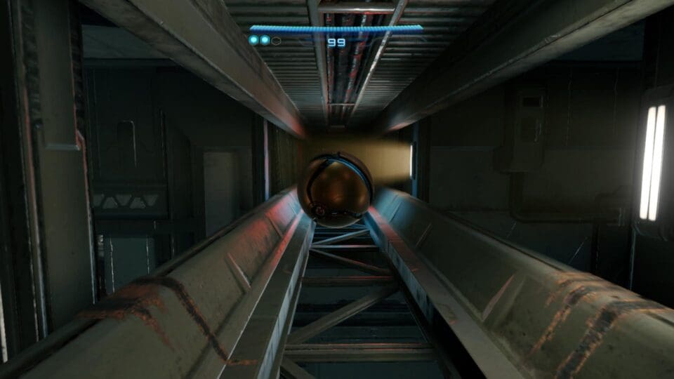 Auch die Möglichkeit, sich mithilfe der Morph-Ball-Technologie zu verwandeln, kommt erneut zum Einsatz. Sie erlaubt es Samus, sich zu einer Kugel zu formen und so enge Schächte zu durchqueren, alternative Routen zu entdecken und spezielle Rätsel zu lösen. In dieser Form lassen sich zudem Bomben und Power-Bomben platzieren, um brüchige Stellen zu zerstören und neue Passagen freizulegen. Darüber hinaus bietet Beyond erstmals dedizierte Abschnitte, die vollständig im Morph Ball absolviert werden müssen. Diese erinnern stellenweise an kleine Murmel- oder Geschicklichkeitsspiele und nutzen das präzise Haptik-Feedback der neuen Joy-Cons effektiv: Spieler spüren deutlich, auf welchem Untergrund der Ball rollt oder wann eine Bombe gezündet wird.