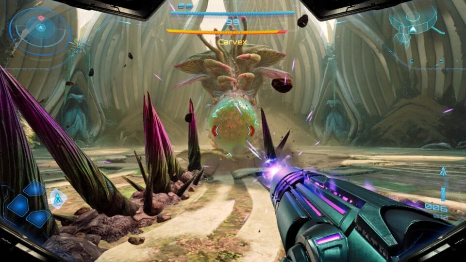 Mit dem Control Beam lässt sich zudem die Flugbahn von Schüssen während des Flugs beeinflussen, eine Fähigkeit, die vor allem in Bosskämpfen nützlich ist, um Schwachstellen hinter Schutzschilden zu treffen oder Schalter in der Umgebung zu aktivieren, die „um die Ecke“ liegen. Psychic Bombs erweitern das klassische Bombensystem der Reihe um eine taktische Komponente: Anders als herkömmliche Bomben detonieren sie nicht nur physisch, sondern entfalten zusätzlich einen psychischen Effekt, der Gegner kurzzeitig lähmt, ihre Bewegungen beeinflusst oder Schilde destabilisiert. In Kombination mit dem Morph Ball eröffnen sich dadurch neue Rätselvarianten, bei denen Timing und Positionierung entscheidend sind.