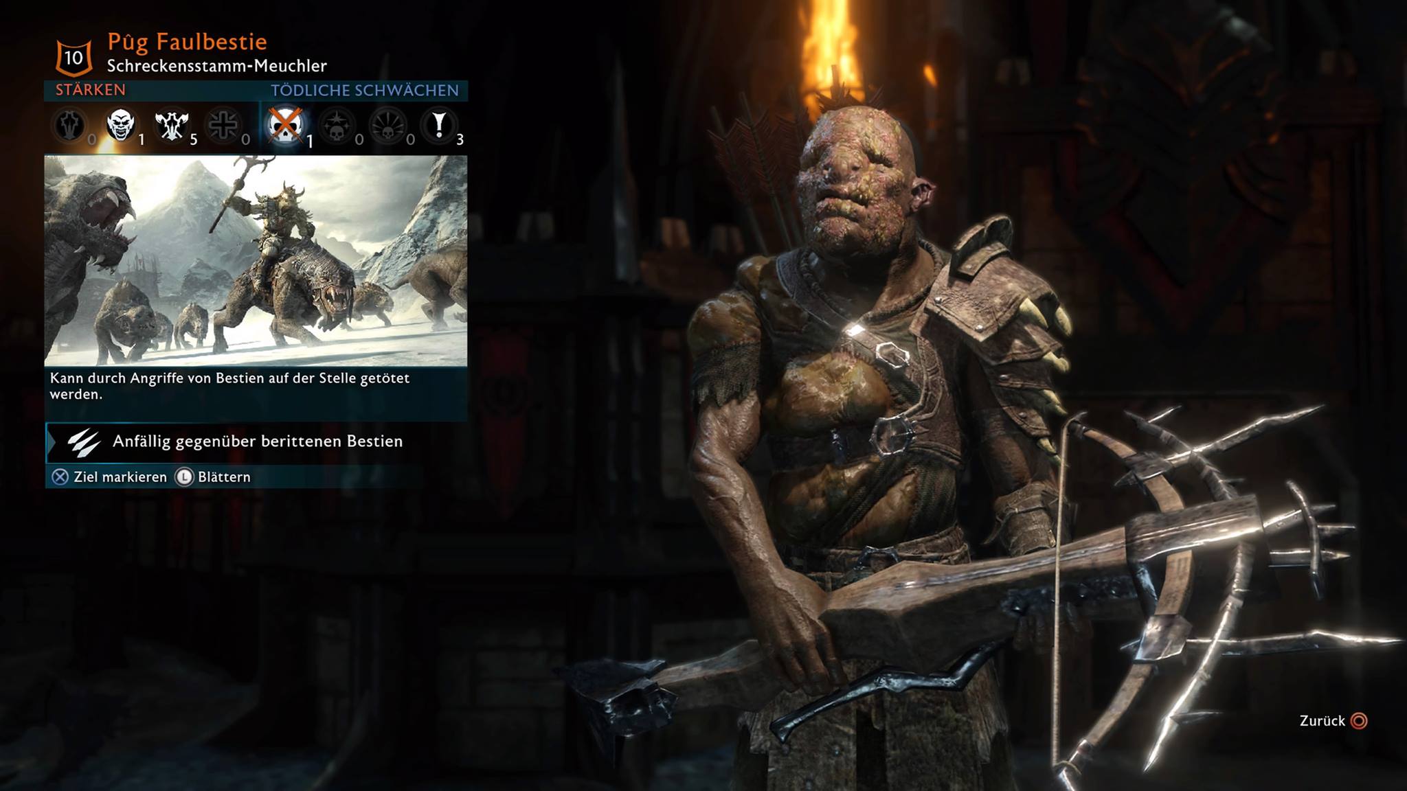 Im späteren Verlauf des Spieles sind wir in der Lage, Orks zu beherrschen und so unsere eigene Armee aufzubauen. Dies wird spätestens wenn es darum geht die diversen Festungen in Mittelerde zu erobern, ein zentrales Element von Mittelerde: Schatten des Krieges.