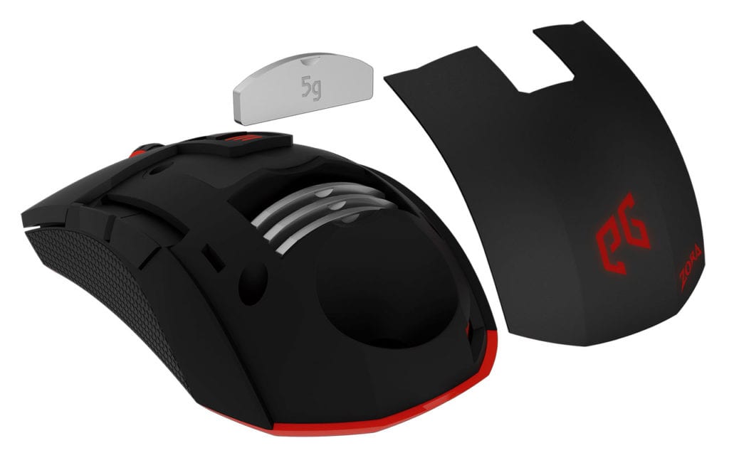 Gemeinsam mit Pro-Gamern entwickelt, unterstützt die Linienführung der Rechtshändermaus ZorA einen extrem gestützten und perfekt ausbalancierten Griff. Das getrennte Tastenabdeckungsdesign bietet Gamern höchste Klickpräzision und Feedback während das anpassbare Gewichtssystem sich mühelos auf sämtliche Spielstile einstellen lässt.