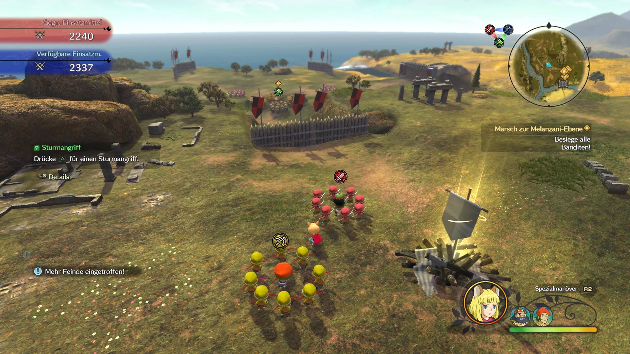 Auch sehr viel Spaß machten mir die Schlachtfeldeinsätze. Darin sammelt Evan bis zu vier Einheiten um sich und geht dabei Räubern ans Leder, wehrt Angriffe ab, oder nimmt feindliche Stellungen ein. Diese Scharmützel folgen dem Scheren-Stein-Papier-Prinzip. Damit es nicht zu leicht wird ist geschicktes Ressourcenmanagement gefragt. Hat man das Prinzip einmal im Blut spielen sich die Schlachtfeldeinsätze angenehm kurzweilig und sind eine schöne Abwechslung.