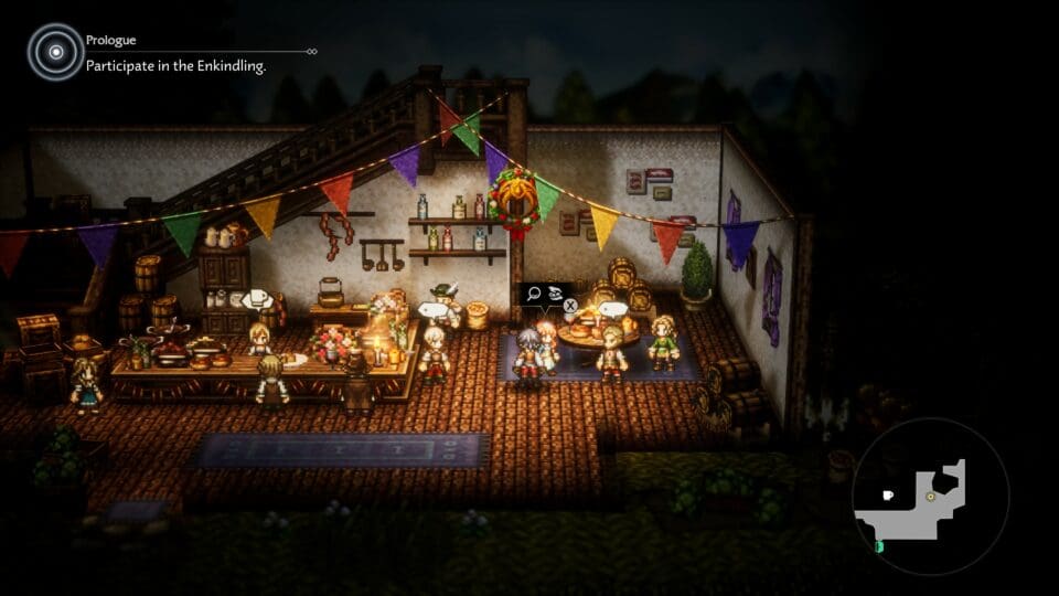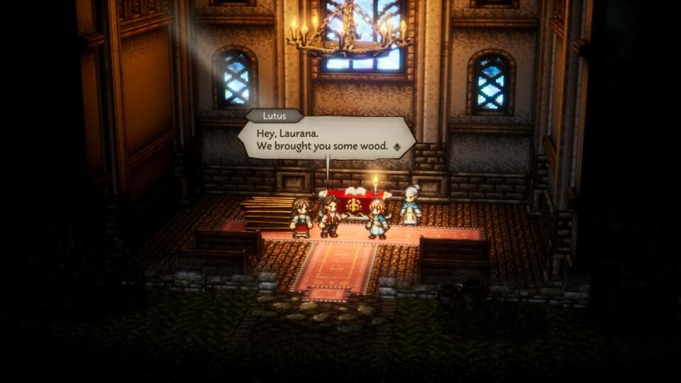 In OCTOPATH TRAVELER 0 müsst ihr auf den Ruinen eurer zerstörten Heimatstadt eine neue Stadt aufbauen. Dazu platziert ihr Gebäude, Felder, Pflanzen, Wege und andere Strukturen auf einem vorgegebenen Raster. Das ist nicht so komplex wie in Cities: Skylines, aber durchaus ganz abwechslungsreich. Diese Strukturen können durch Erkundung und Kämpfe verbessert werden. Neue Charaktere, die ihr im Laufe des Spieles trefft und die sich euch möglicherweise anschließen, können entweder mit der bis zu acht Mann starken Gruppe auf Erkundung gehen und mit euch kämpfen, oder in Wishvale bleiben und beim Wiederaufbau helfen.