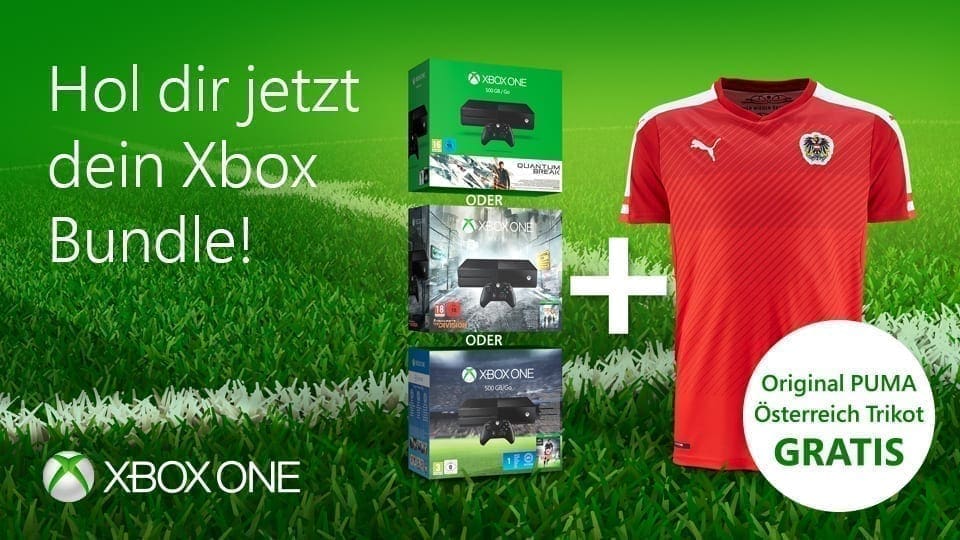 Noch bevor der erste Ball im Tor versenkt ist, regiert König Fußball auch bei Xbox Österreich: Damit in den heimischen Wohnzimmern mit Xbox One und zB EA Sports FIFA 16 formvollendet für DAS Sportereignis des Jahres trainiert werden kann, gibt es ab sofort bei Media Markt und Saturn das Original Puma Österreich Trikot im Wert von 80,- EUR (unverbindliche Preisempfehlung) zu jedem Xbox One Bundle kostenlos dazu (Limited Editions ausgenommen)! Aber nur so lange der Vorrat reicht. Anpfiff!