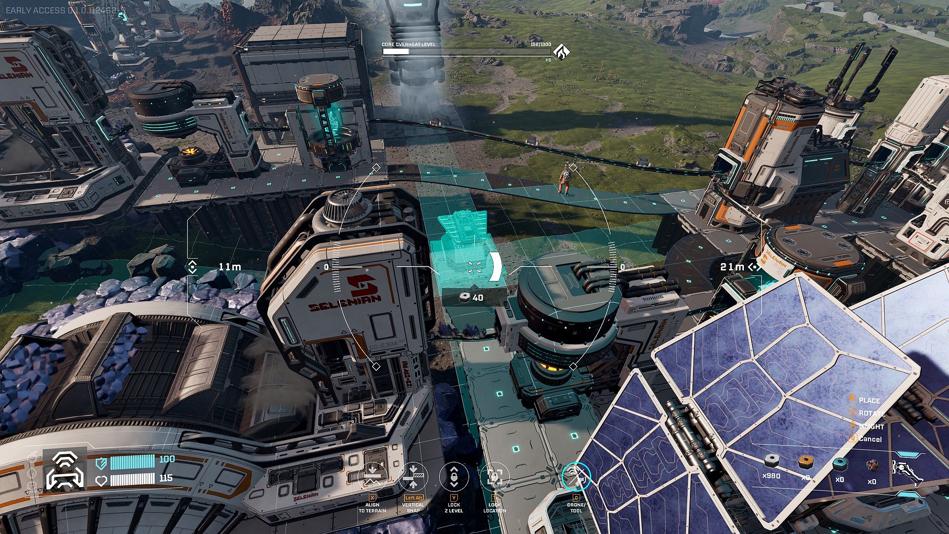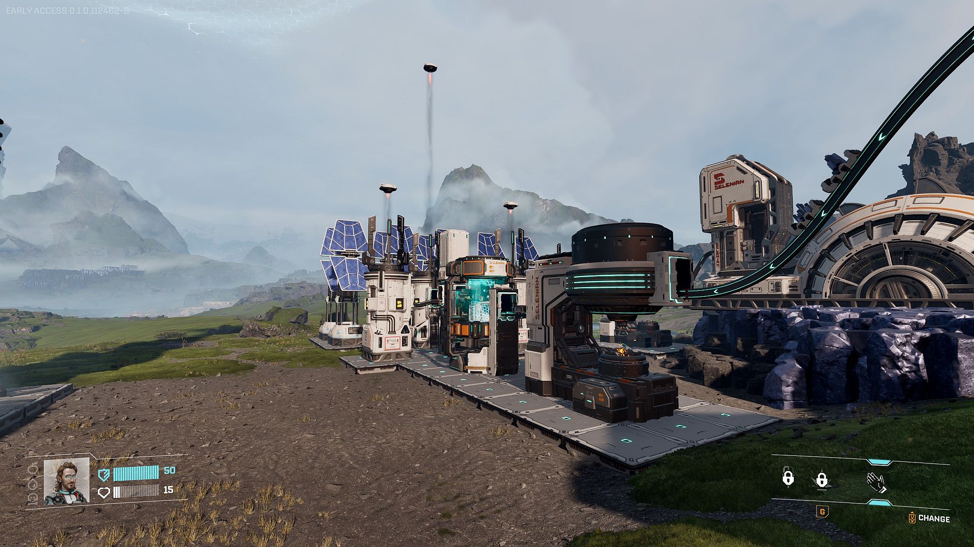 Der Planet selbst ist allerdings kein neutraler Hintergrund, sondern eine aktive Bedrohung. Die Spielwelt ist reich an Ressourcen, aber instabil und feindselig. Statt ruhigem Optimieren unter Idealbedingungen soll der Aufbau funktionierender Produktionsketten unter Zeitdruck und Gefahr im Mittelpunkt stehen. Gegen die vielfüßige Alien-Geziefer-Bedrohung müssen wir uns mit upgradbaren Waffen, Granaten und Selbstschuss-Anlagen wehren. Zudem kommt es in regelmäßigen Abständen zu einem Teil-Reset der Spielwelt, denn die Sonne des Planeten bricht gerne aus und brät die gesamte Planetenoberfläche schön knusprig.