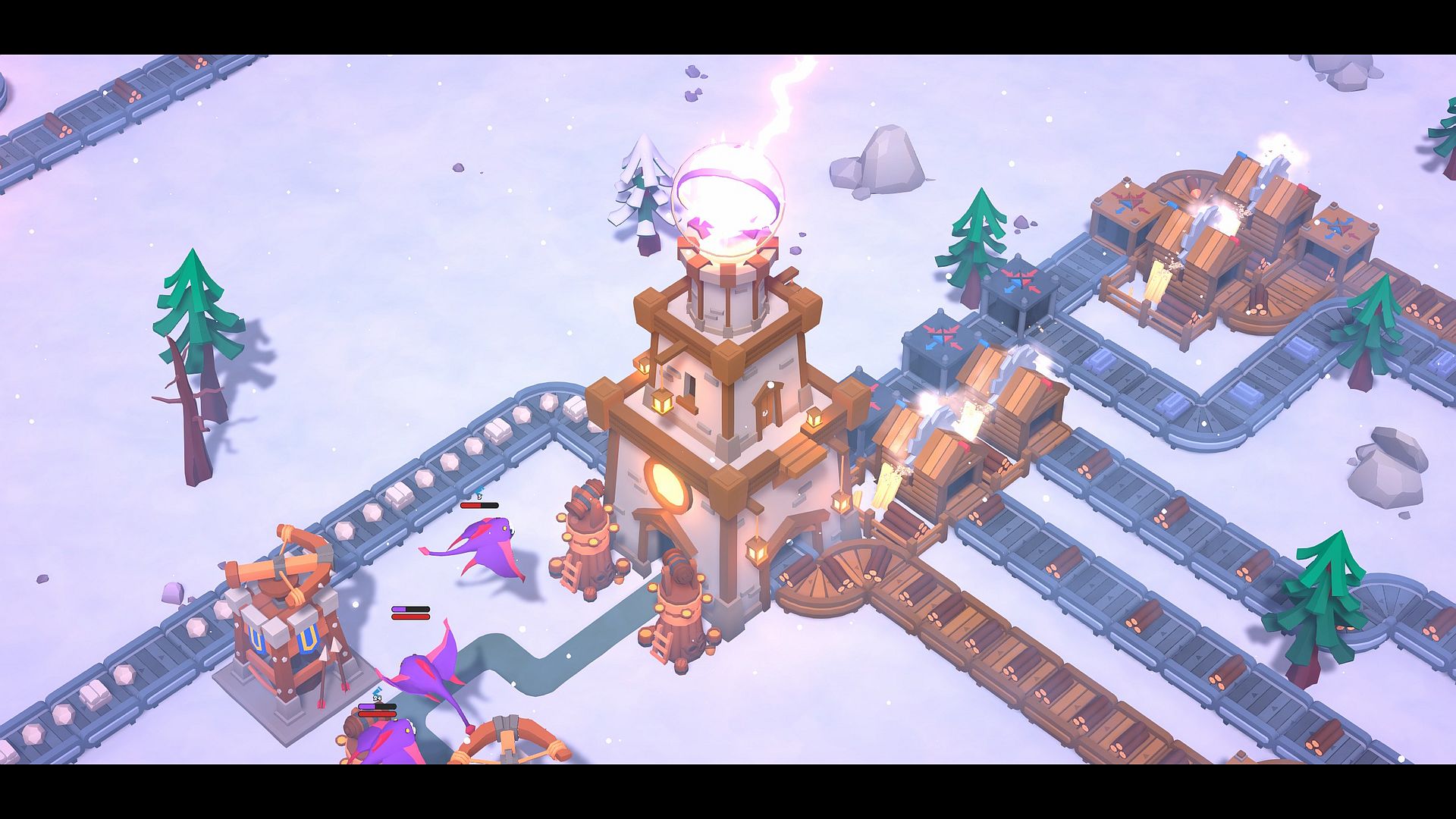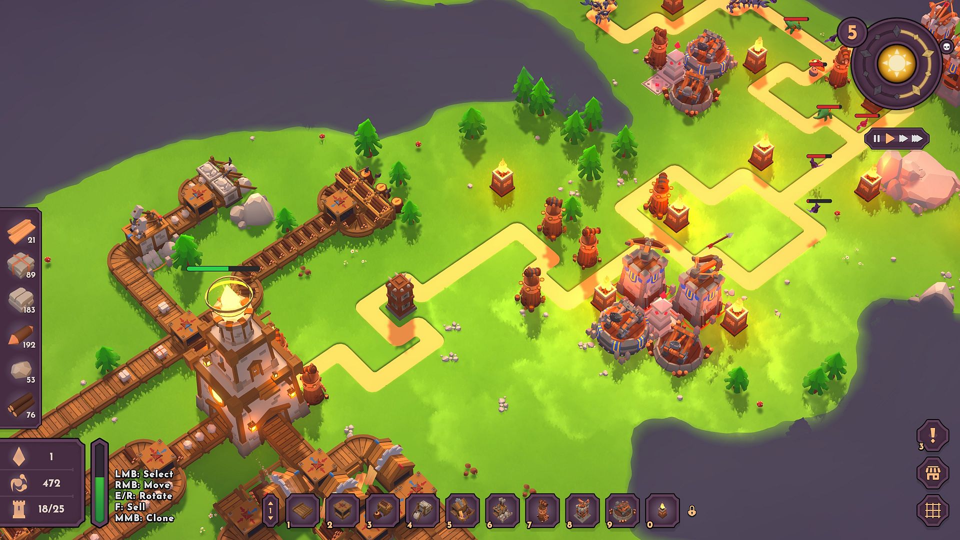 Tower Factory verbindet klassisches Tower-Defense-Gameplay mit Automation und rogueliteartigen Strukturen. Im Kern geht es wie immer darum, Gegnerwellen mithilfe platzierter Türme aufzuhalten, Engpässe zu schaffen und Synergien zwischen Türmen zu nutzen. Gleichzeitig werden Ressourcen generiert und in neue Bauten investiert. Soweit, so Tower Defense-Standardkost, auch wenn zwischen den zufallsgenerierten Karten das eine oder andere Upgrade freigeschaltet werden kann.