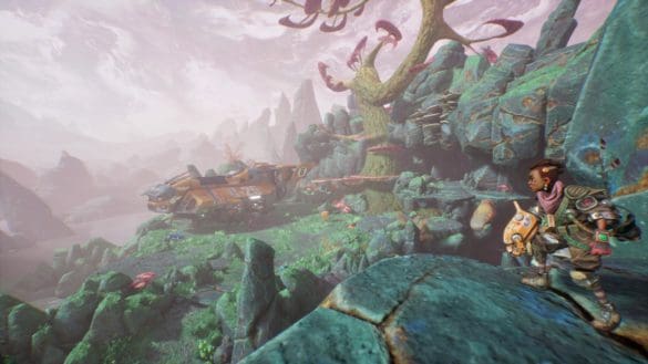 Das 3D-Action-Adventure dreht sich um die beiden Glücksritterinnen Rani & Becks, die als Weltraum-Schrottsammlerinnen gerade mal so über die Runden kommen. Ihr Blatt scheint sich zu wenden, als sie auf einen scheinbar unberührten und extrem ressourcenreichen Planeten stoßen. Ganz so verlassen ist der Planet dann aber doch nicht und die beiden stoßen auf Ruinen einer fortschrittlichen Zivilisation, überzogen von einer toxischen schwarzen Masse. Dieser namensgebende Gunk breitet sich immer weiter aus und absorbiert die prächtige Flora und Fauna und droht den Planeten zu zerstören. Vor allem der sensiblen Rani geht das ans Herz und sie beschließt den Gunk zu bekämpfen und herauszufinden, wie es überhaupt so weit kommen konnte. Ihr Powerhandschuh eignet sich zum Glück hervorragend zur Beseitigung des Parasiten, der sich damit wunderbar einsaugen lässt …