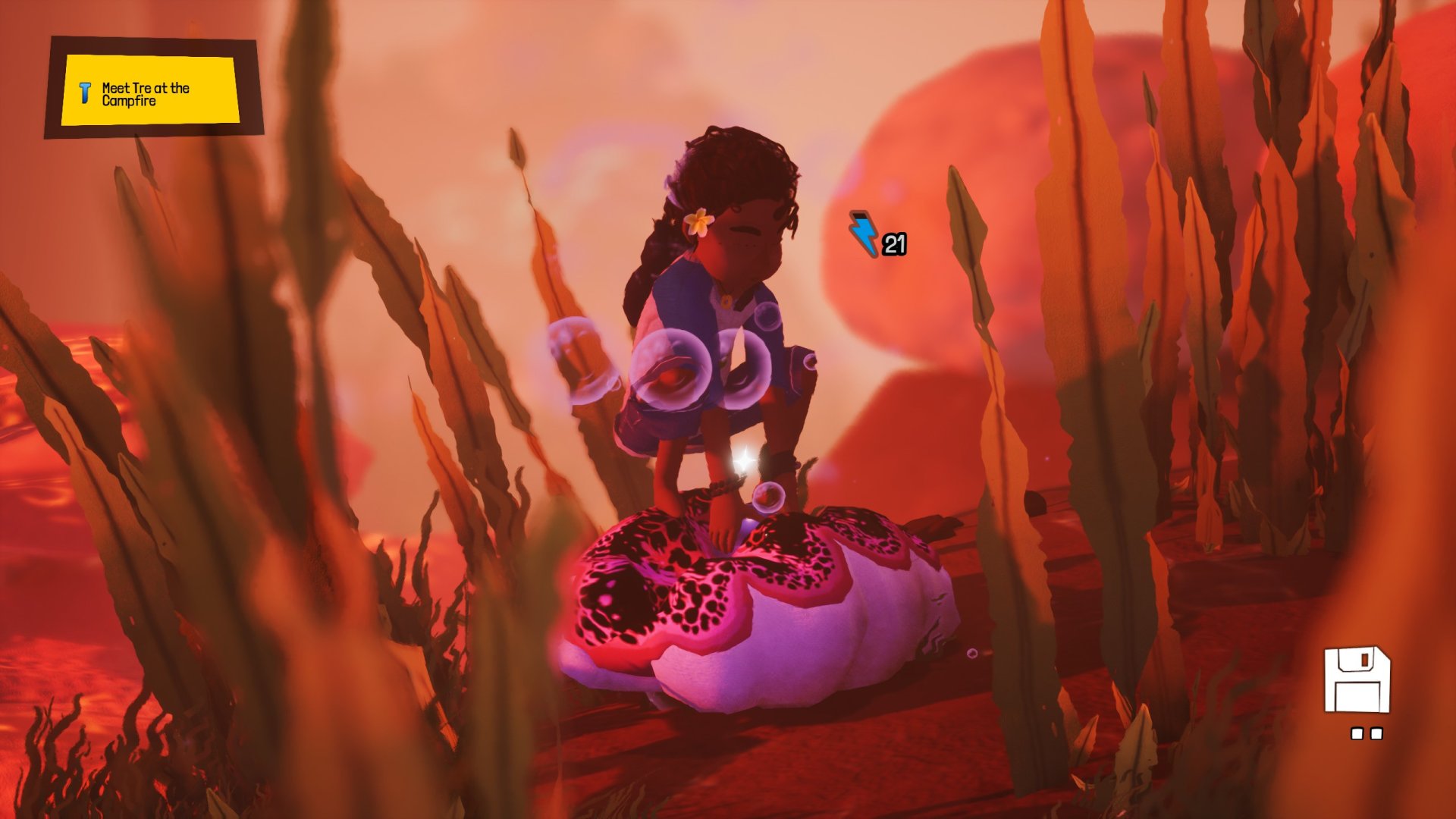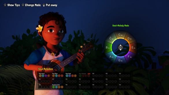 Gameplaytechnisch wird ein solider Plattformer geboten, aufgelockert durch Mini-Games und Nebenaktivitäten wie eine voll spielbare Ukulele. Mit letzterer lassen sich auch sogenannte Seelenmelodien anstimmen, welche Spielwelt und Spielgeschehen beeinflussen können. Die wichtigste und interessanteste Spielmechanik ist allerdings Tchias Fähigkeit des Seelenspringens. Für kurze Zeit kann sie Tiere aber auch leblose Gegenstände übernehmen und kontrollieren. Das erleichtert die Erforschung der Inseln und des umliegenden Ozeans, ist aber auch (über)lebenswichtig im Kampf gegen die Stoffsoldaten des bald schon identifizieren Oberschurken. Und schlussendlich macht es vielleicht einfach Spaß als Kokosnuss über einen Südseestrand zu rollen …